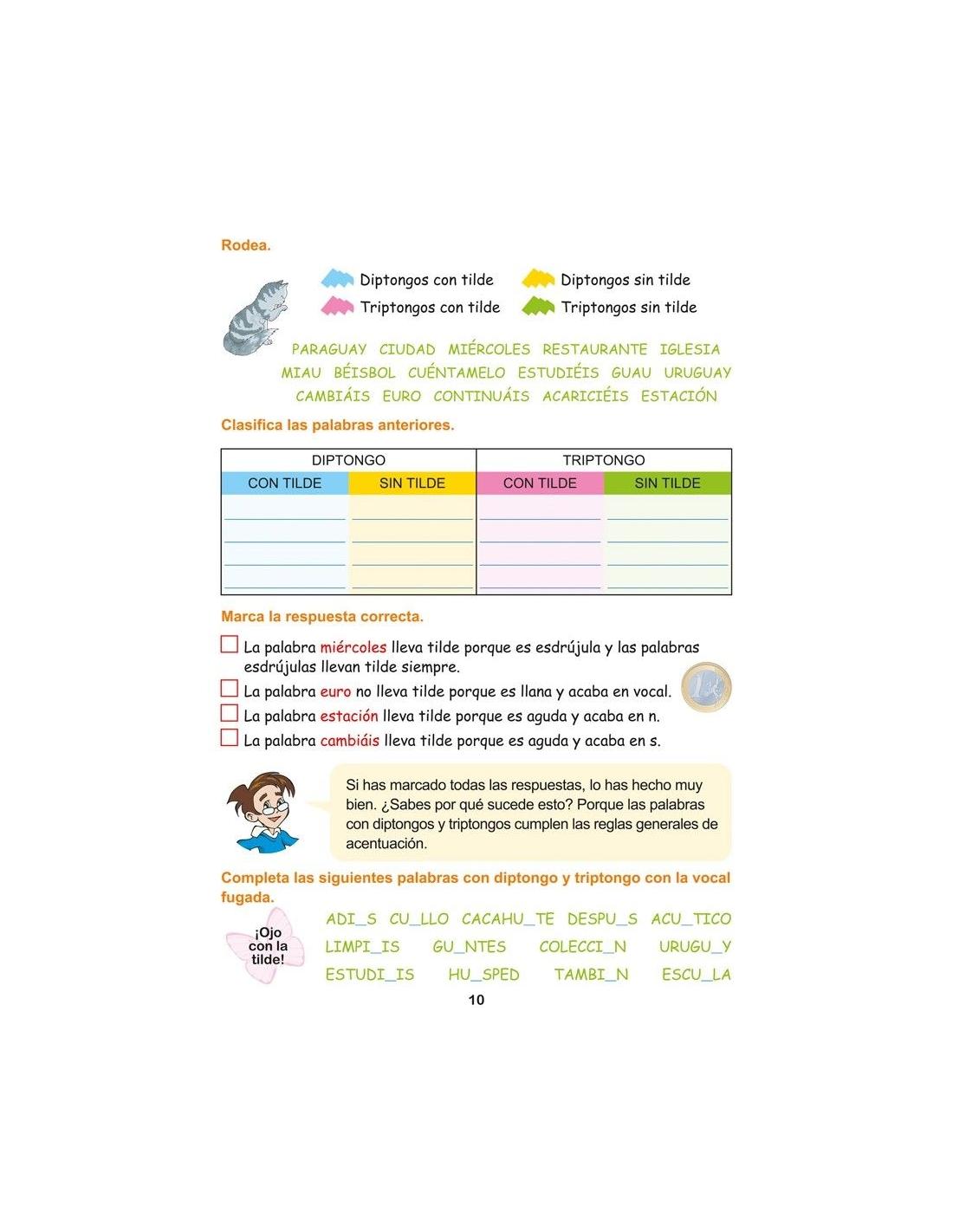 • Repaso del cuaderno 13 (reglas generales de acentuación; acentuación de diptongos y triptongos; reglas de la x y la ll; jugamos con las palabras).