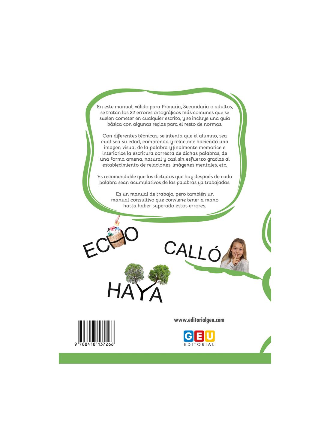 Los dictados que hay después de cada palabra conviene que sean acumulativos de las palabras ya trabajadas. Es un manual de trabajo, pero también un manual consultivo que conviene tener a mano hasta tener superados estos errores.