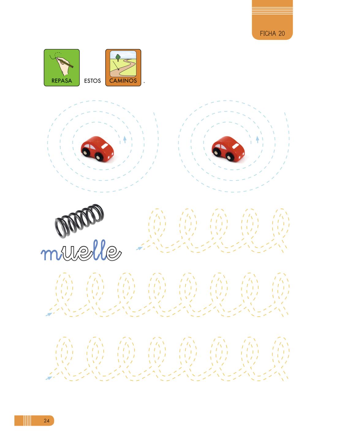 • Las fichas tienen como criterio principal la realización del trazado: asociando la grafía con la forma y significado de la palabra.
