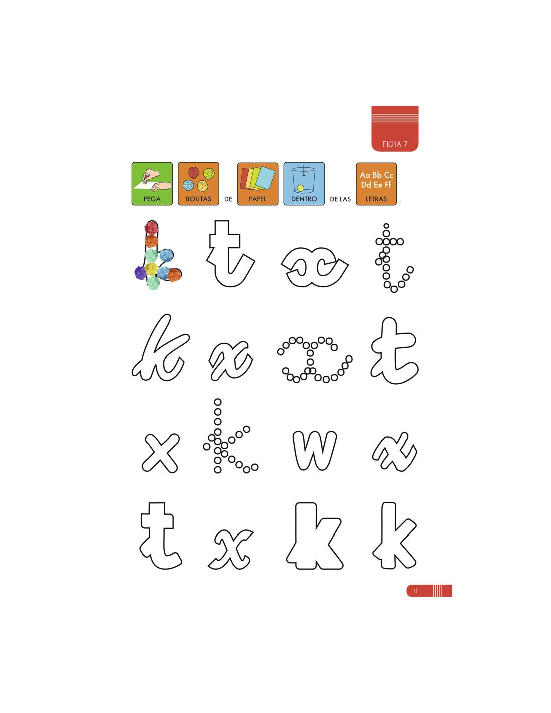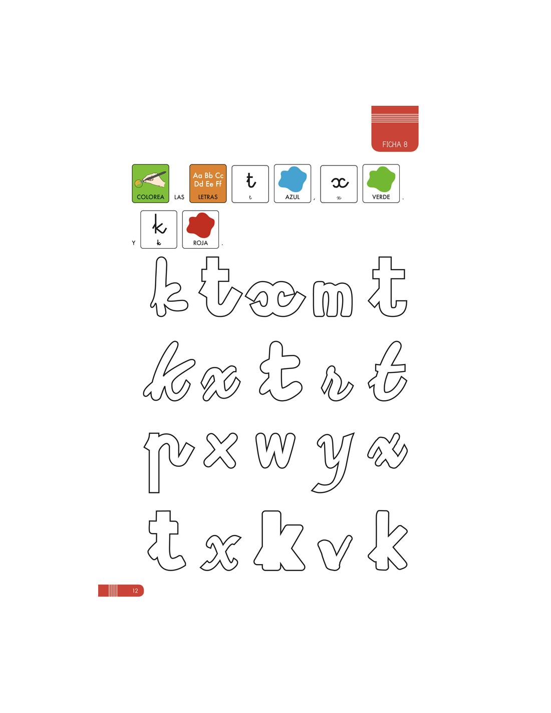 Este cuaderno en concreto, trabaja las consonantes en minúscula: t, x y k.