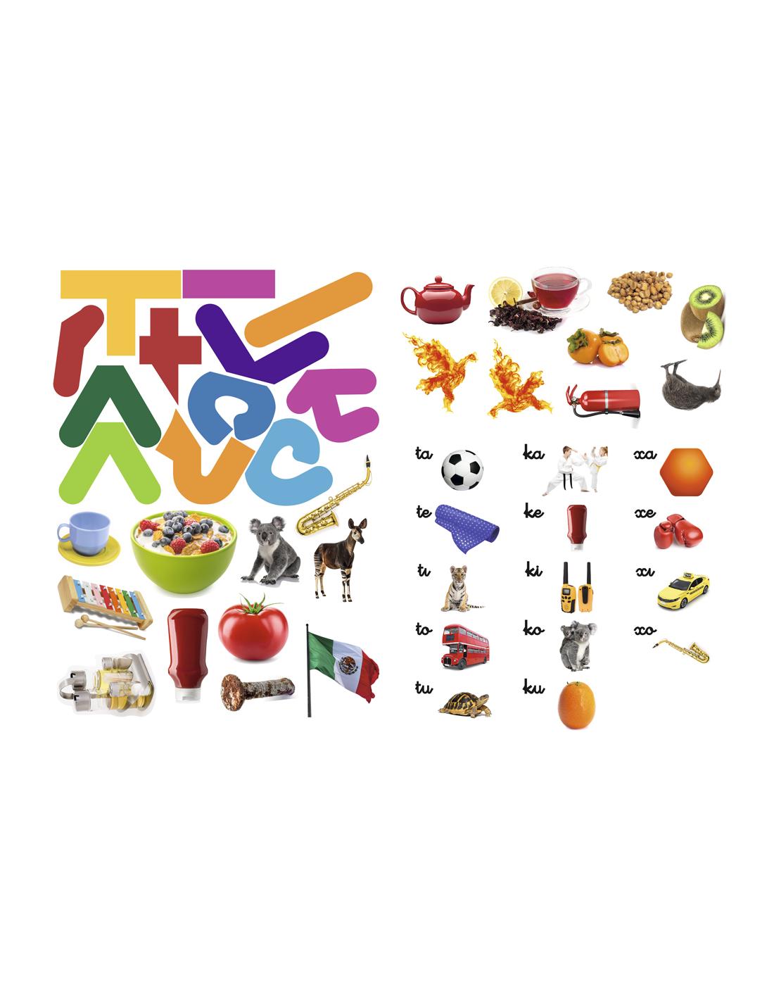 • Las fichas tienen como criterio principal la realización del trazado: asociando la grafía con la forma y significado de la palabra.