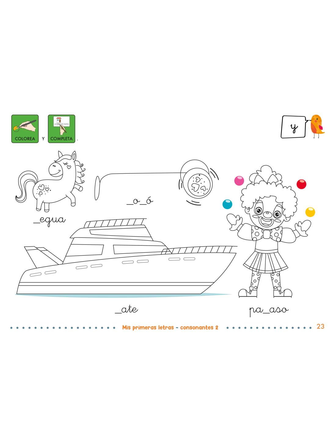 - ✔️ Dibujos para colorear relacionados con cada consonante