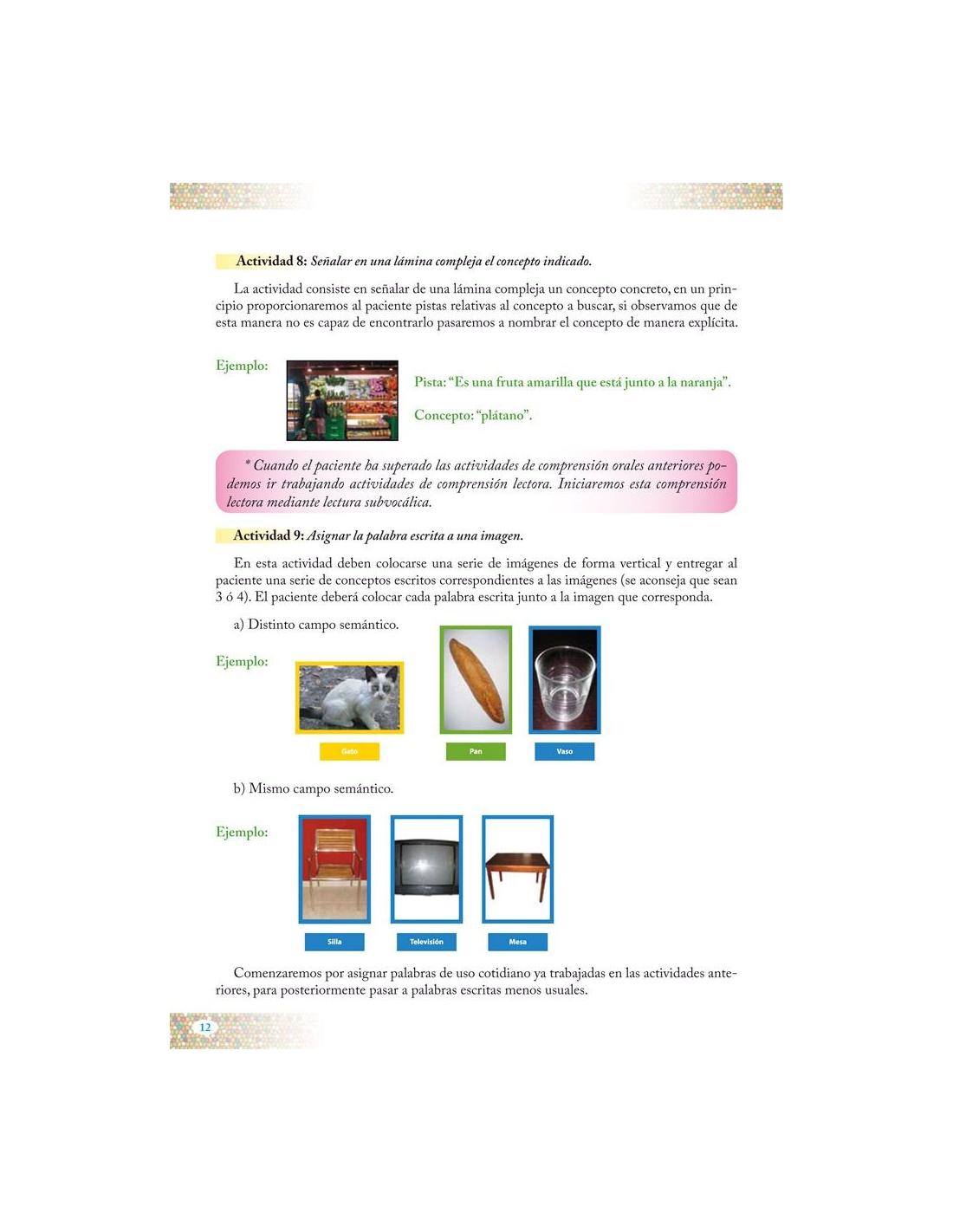 Especialmente recomendado para profesionales que trabajan con personas con dificultad en el lenguaje. Contiene actividades clasificadas en tres niveles de dificultad, algunas de ellas son: