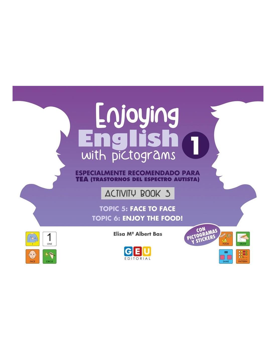 Enjoying English with pictograms 1. Activity book 3 es el segundo cuaderno de ejercicios de la colección ideada para aprender inglés en 1º de Educación Primaria.