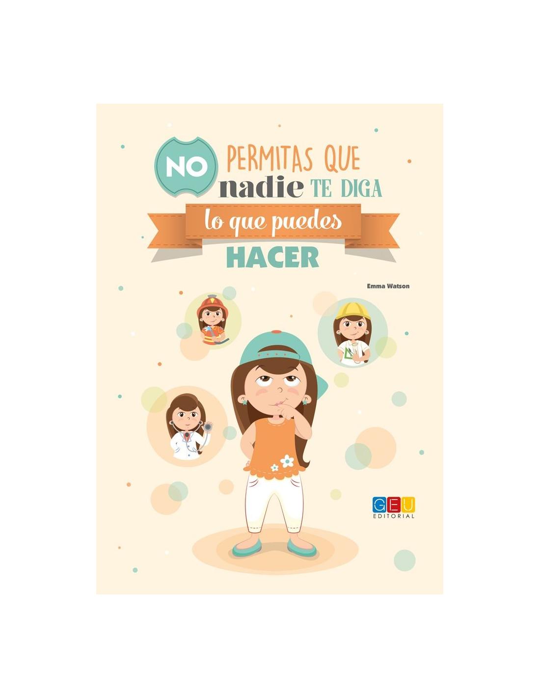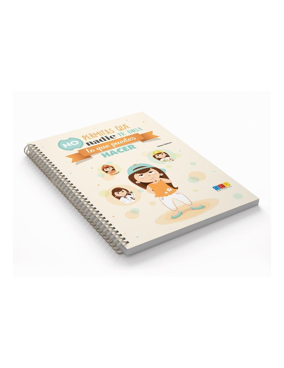 Libreta de tapa blanda en formato A4 con la frase de la reconocida Emma Watson (actriz principal en Harry Potter) "No permitas que nadie te diga lo que puedes hacer". La ilustración de la libreta tiene como protagonista a una niña que piensa y sueña acerca de que quiere ser de mayor.