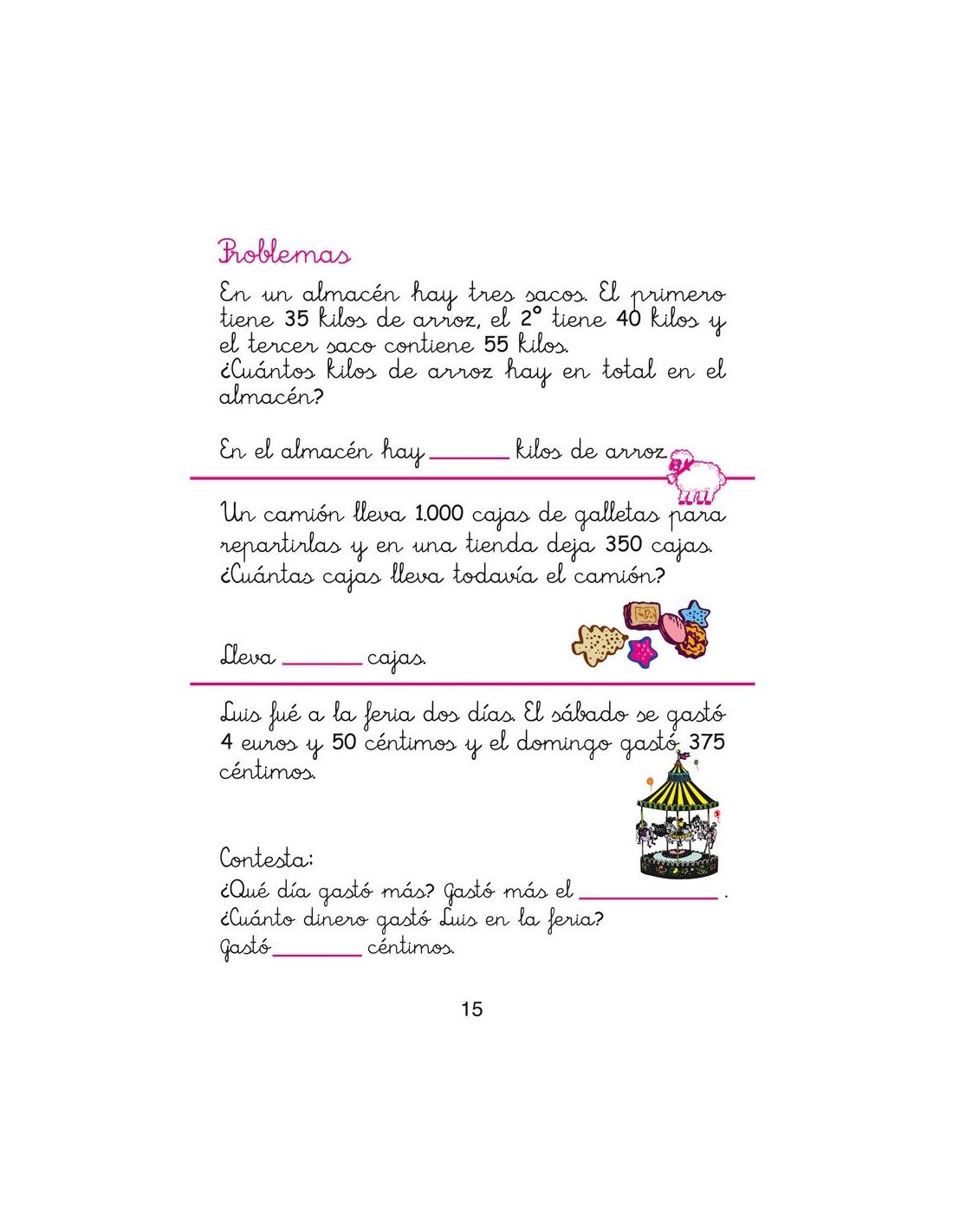 - Cálculo: sumas y restas con llevada, tablas de multiplicar y multiplicaciones con y sin llevada.