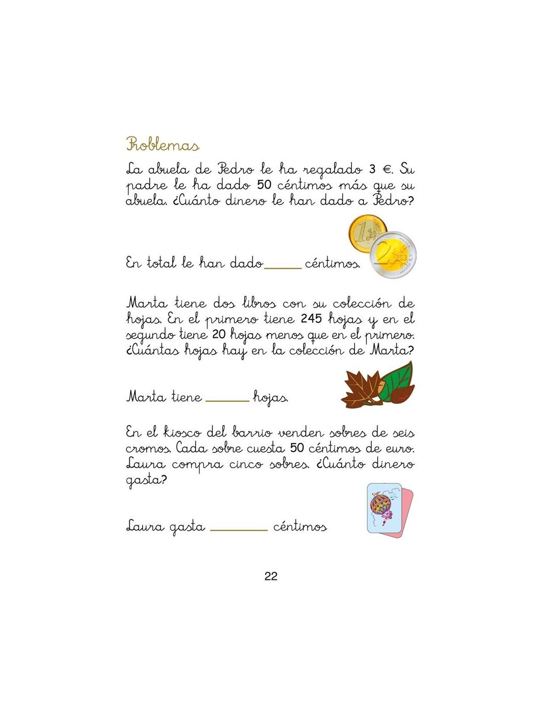 - Problemas de sumas, restas, multiplicaciones y divisiones por una cifra, problemas sobre el euro, etc.