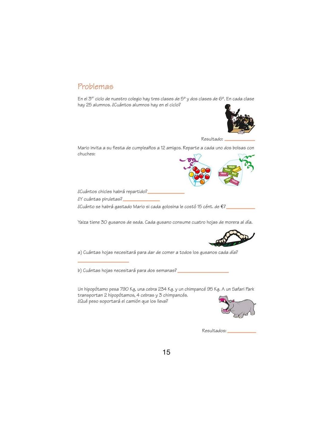 - Problemas: multiplicar, dividir y varias operaciones combinadas.