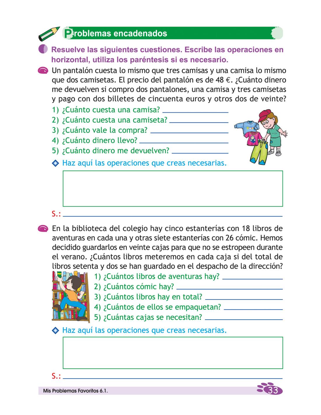 - Problemas que combinan tres o más operaciones: suma, resta, multiplicación y/o división
