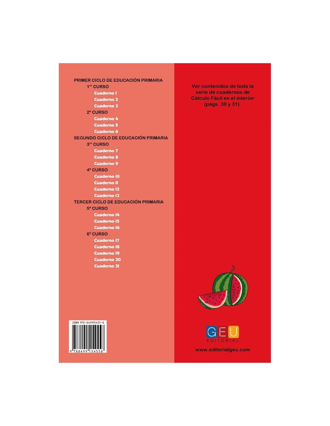 Cálculo fácil 3 forma parte de una colección compuesta por 21 cuadernos que abarca todos los contenidos operativos de cálculo en Primaria de una manera fácil, sencilla e intuitiva.