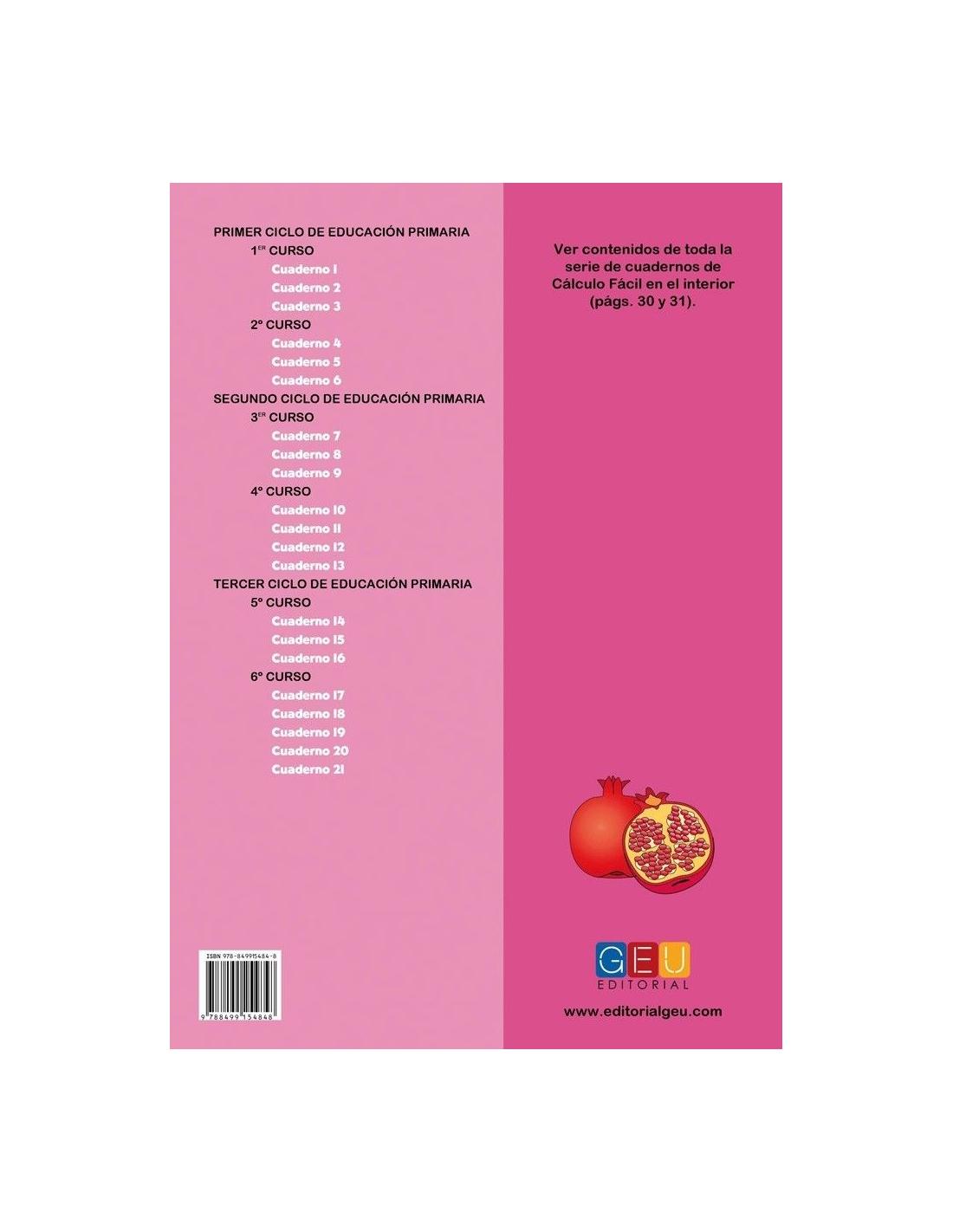 Cálculo fácil 5 forma parte de una colección compuesta por 21 cuadernos que abarca todos los contenidos operativos de cálculo en Primaria de una manera fácil, sencilla e intuitiva.
