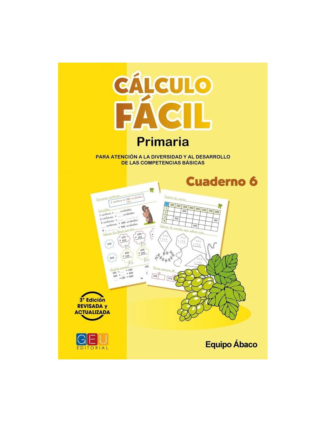 Cálculo fácil 6 forma parte de una colección compuesta por 21 cuadernos que abarca todos los contenidos operativos de cálculo en Primaria de una manera fácil, sencilla e intuitiva.