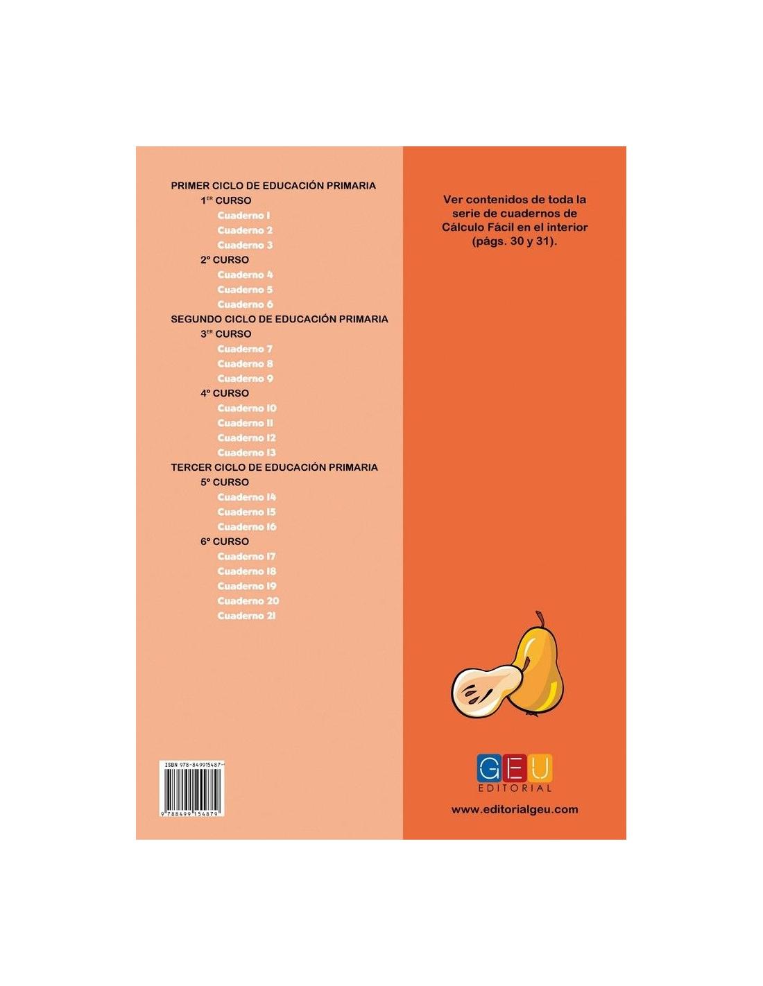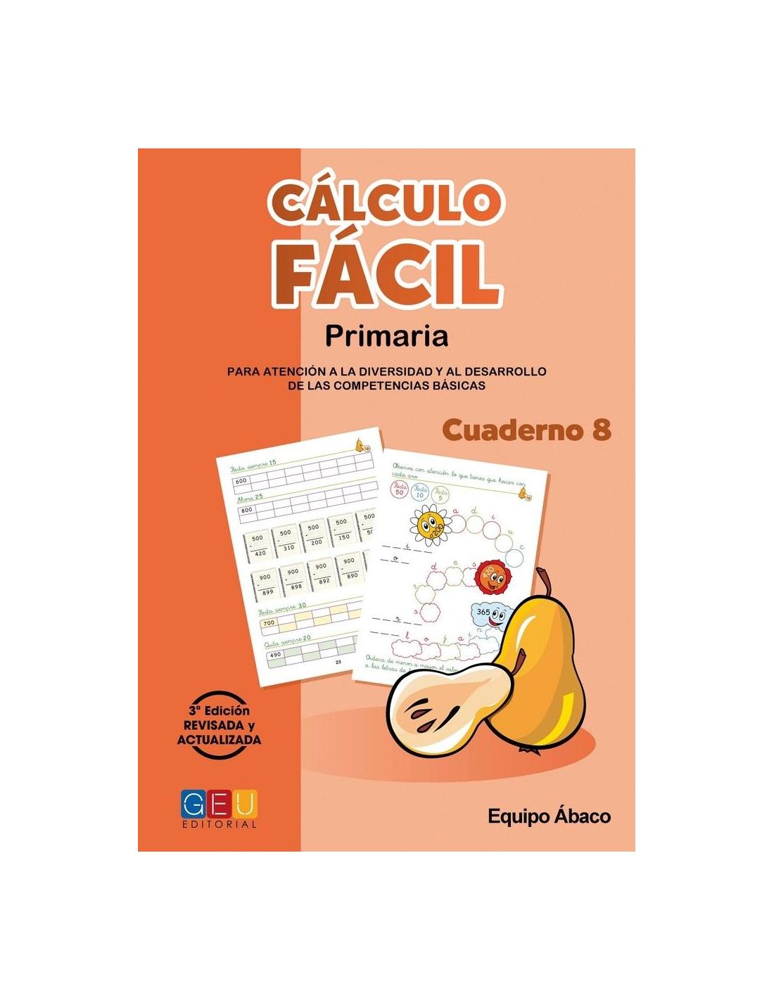 Cálculo fácil 8 forma parte de una colección compuesta por 21 cuadernos que abarca todos los contenidos operativos de cálculo en Primaria de una manera fácil, sencilla e intuitiva.