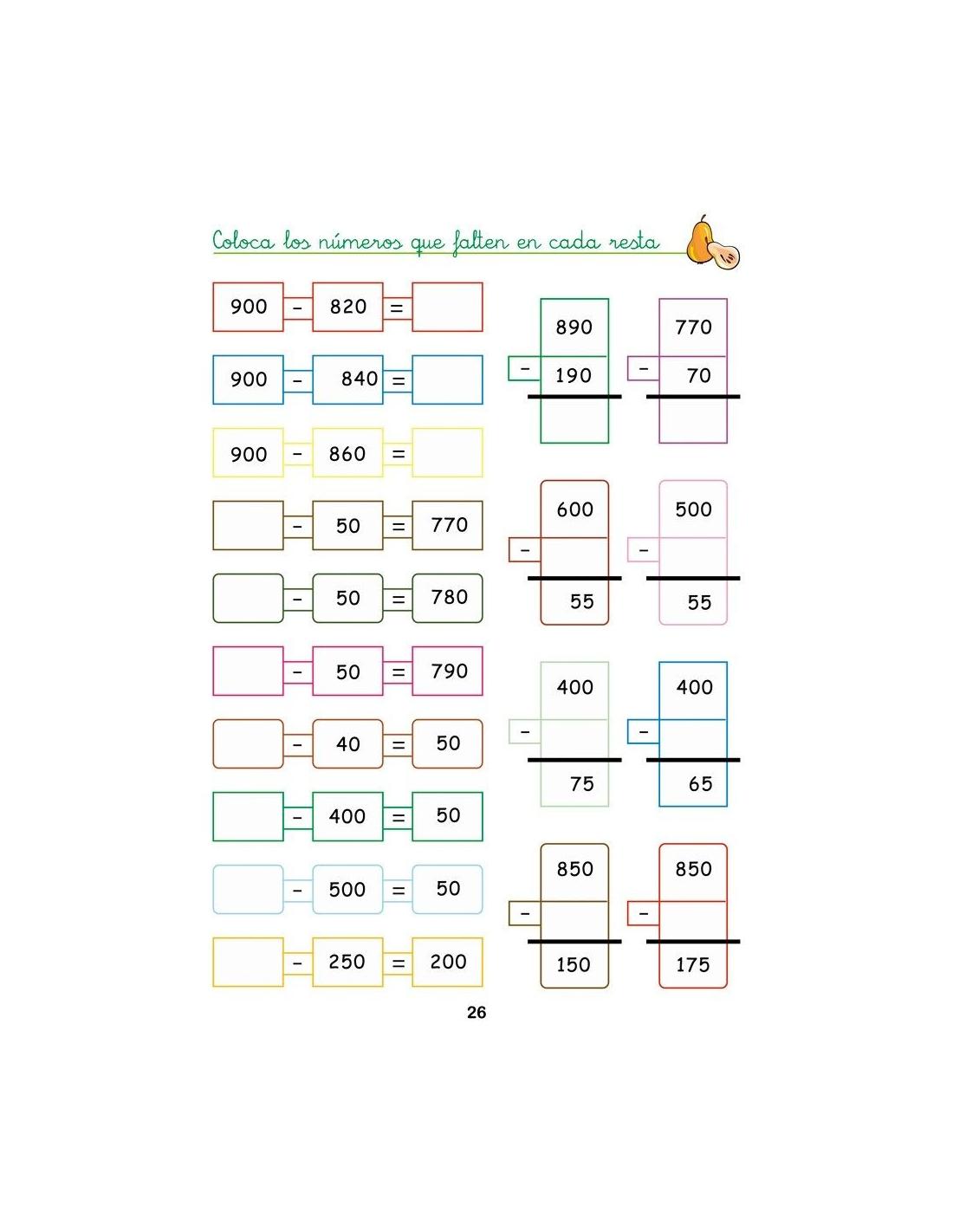 - Restas coloreando decenas, centenas y su transformación en operaciones.