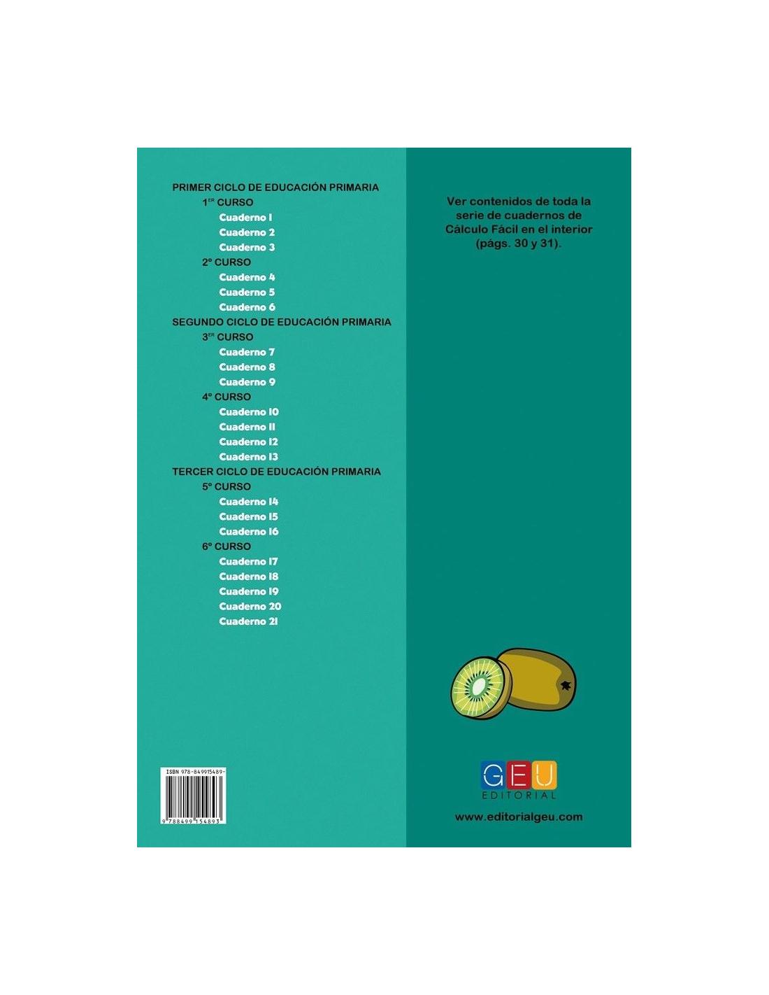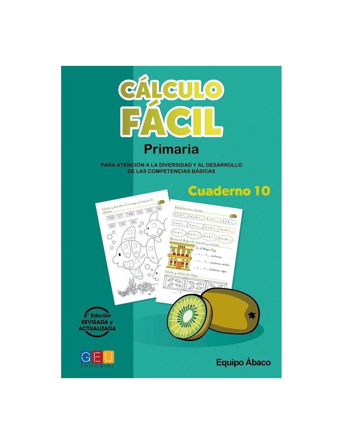 Cálculo fácil 10 forma parte de una colección compuesta por 21 cuadernos que abarca todos los contenidos operativos de cálculo en Primaria de una manera fácil, sencilla e intuitiva.