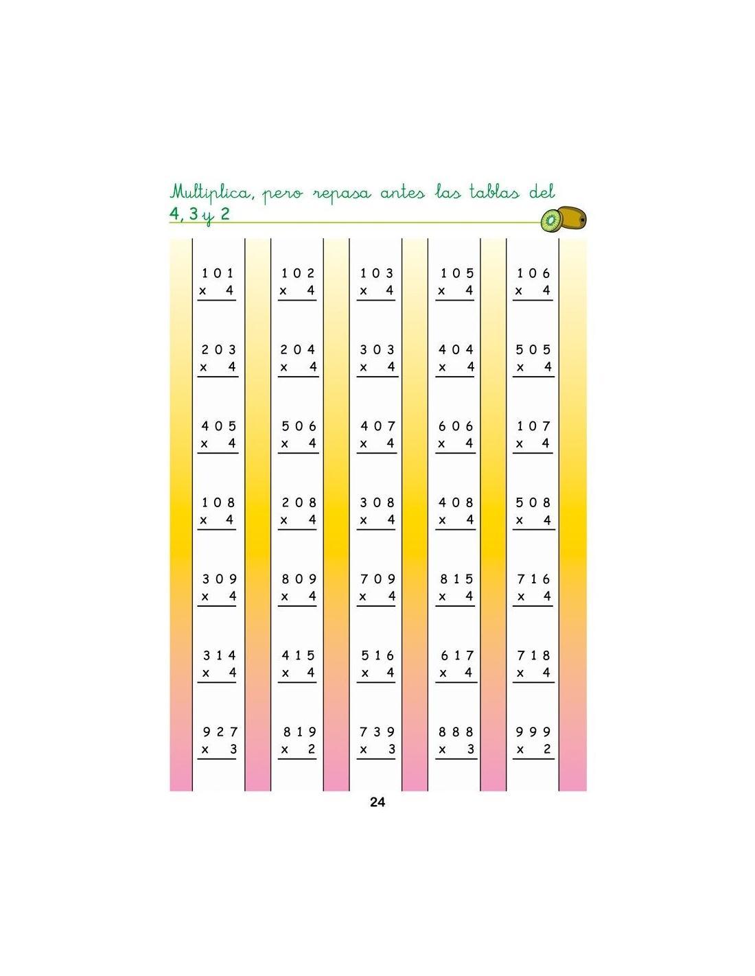 - Multiplicaciones con dos y tres cifras.