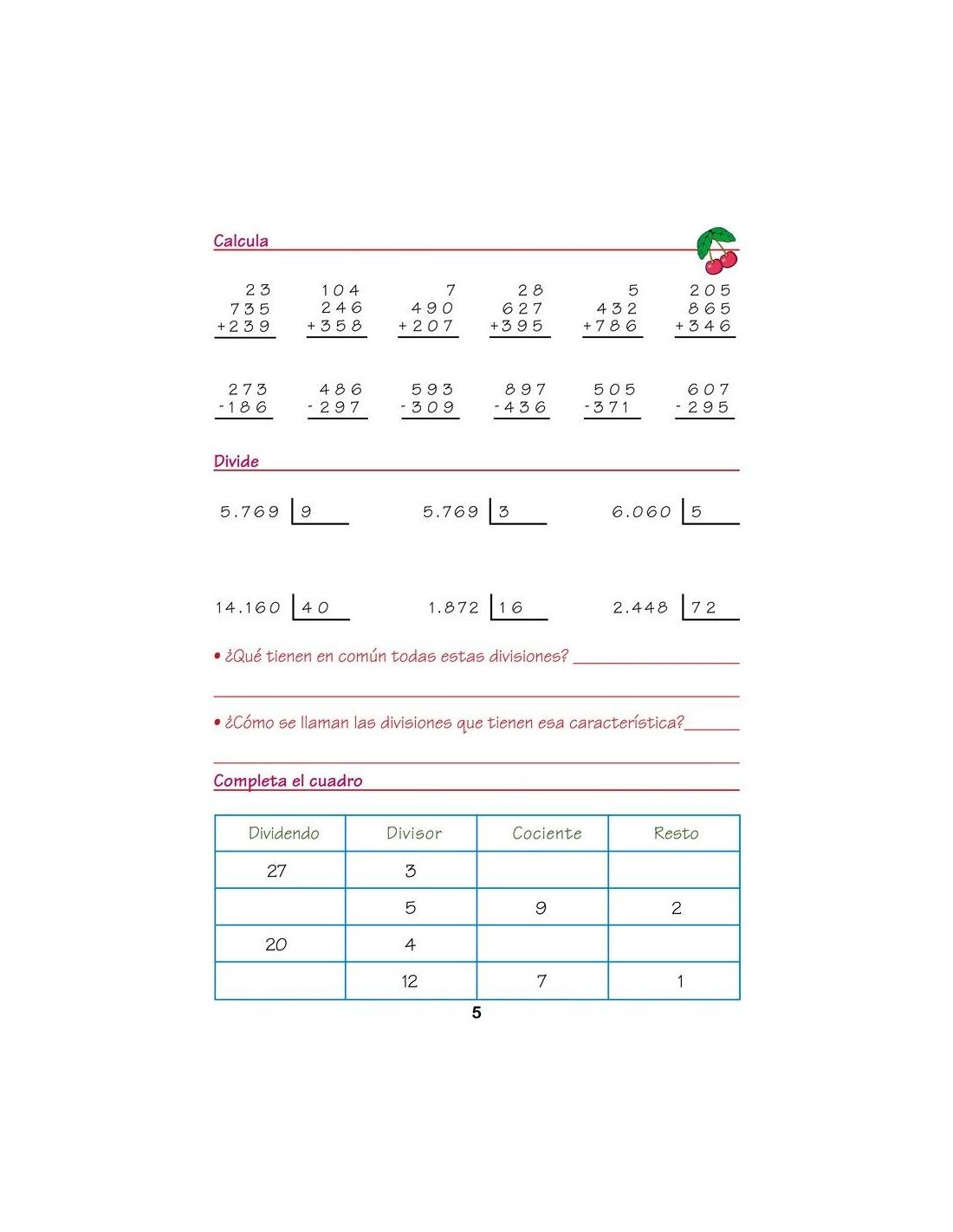 - Multiplicación y división por una y dos cifras.