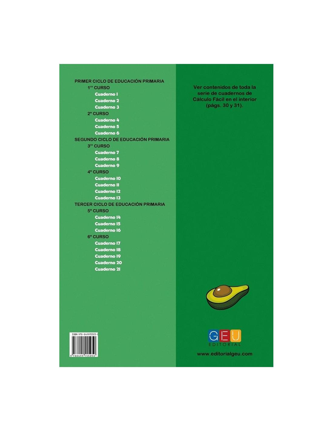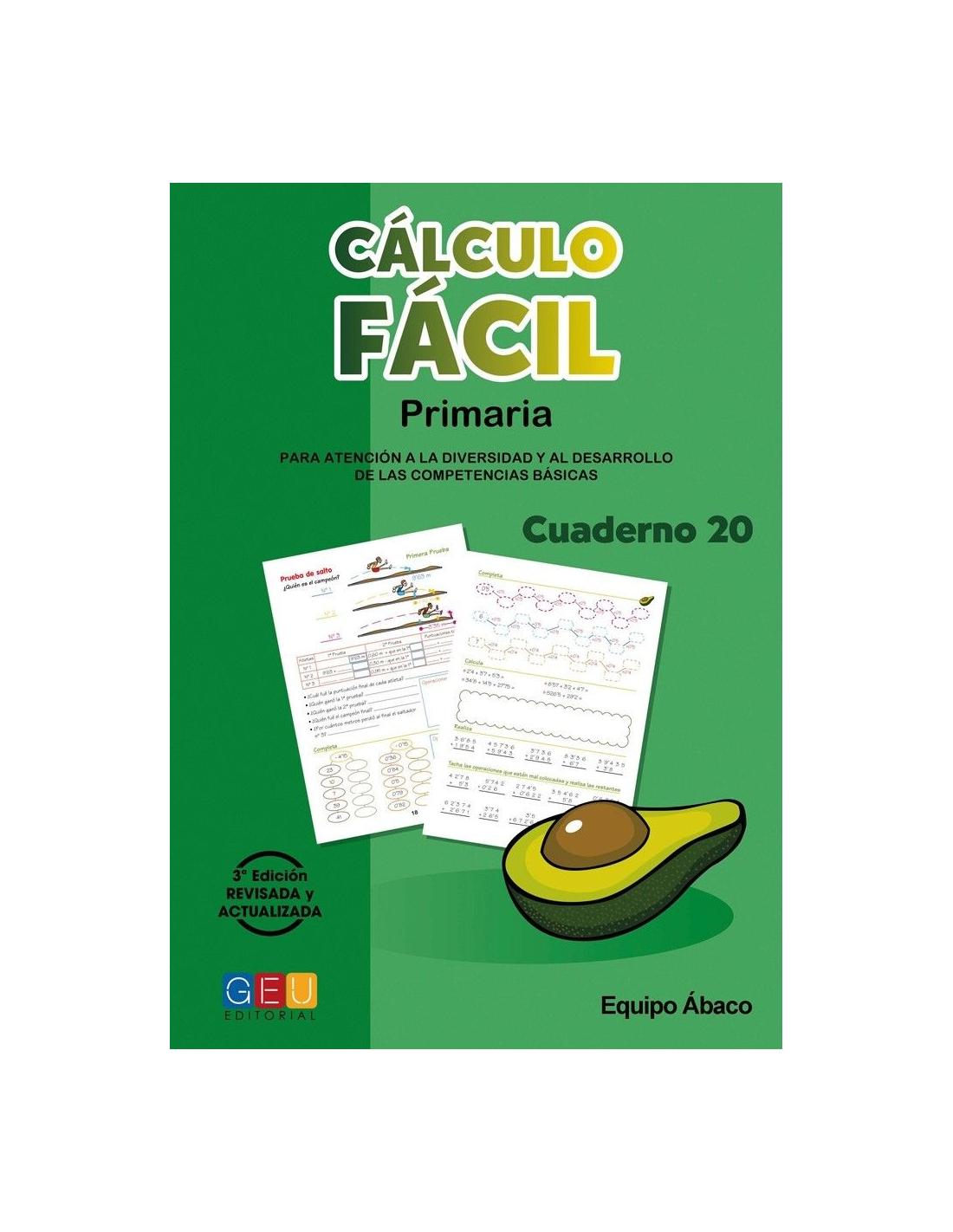 Cálculo fácil 20 forma parte de una colección compuesta por 21 cuadernos que abarca todos los contenidos operativos de cálculo en Primaria de una manera fácil, sencilla e intuitiva.