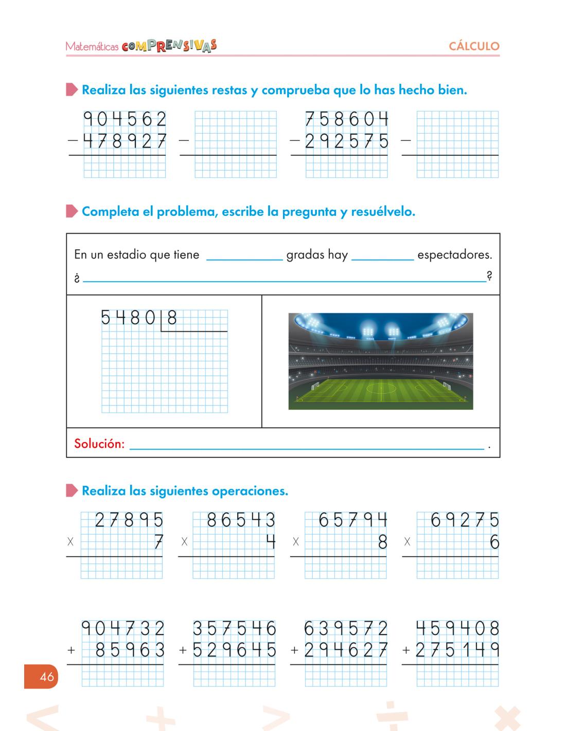 ✔ Sumas y restas llevando. Multiplicando por dos cifras. Divisiones por una cifra (hasta el 9 en el divisor)