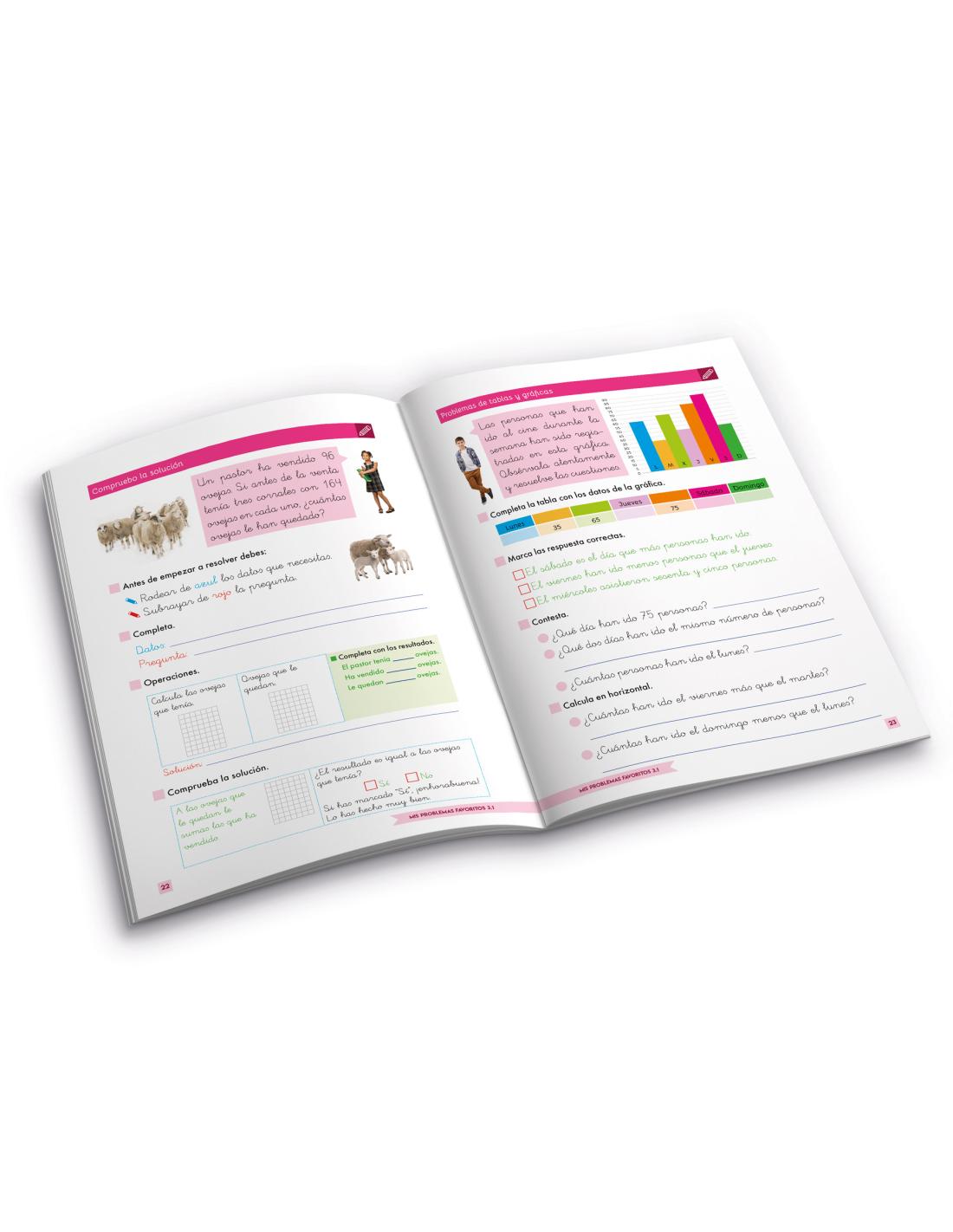 Incluye problemas cotidianos, problemas con trampa, de cálculo mental, y problemas con tablas y gráficas, para desarrollar el pensamiento lógico.