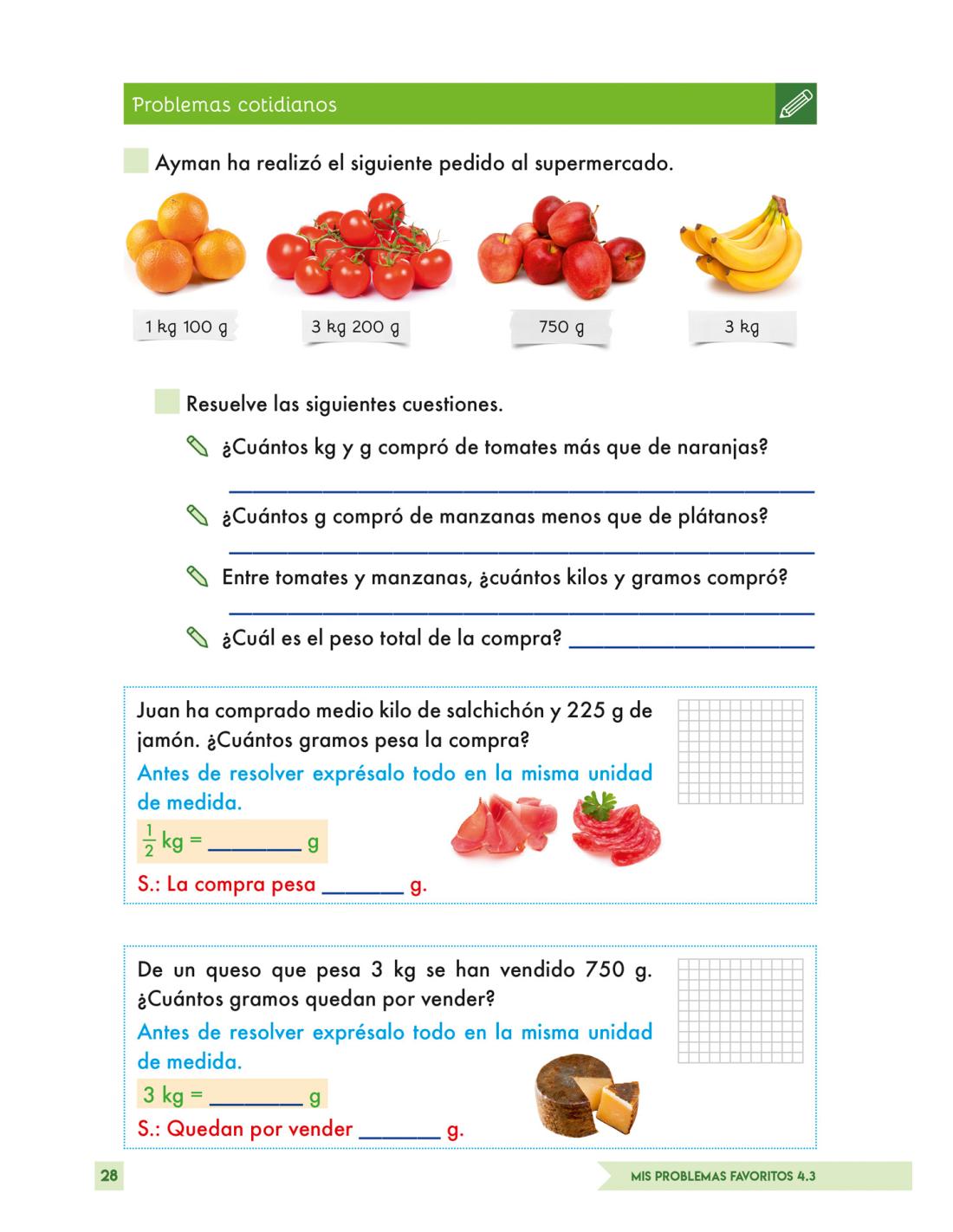 - Actividades con unidades de medida: tiempo, longitud, peso, capacidad y dinero