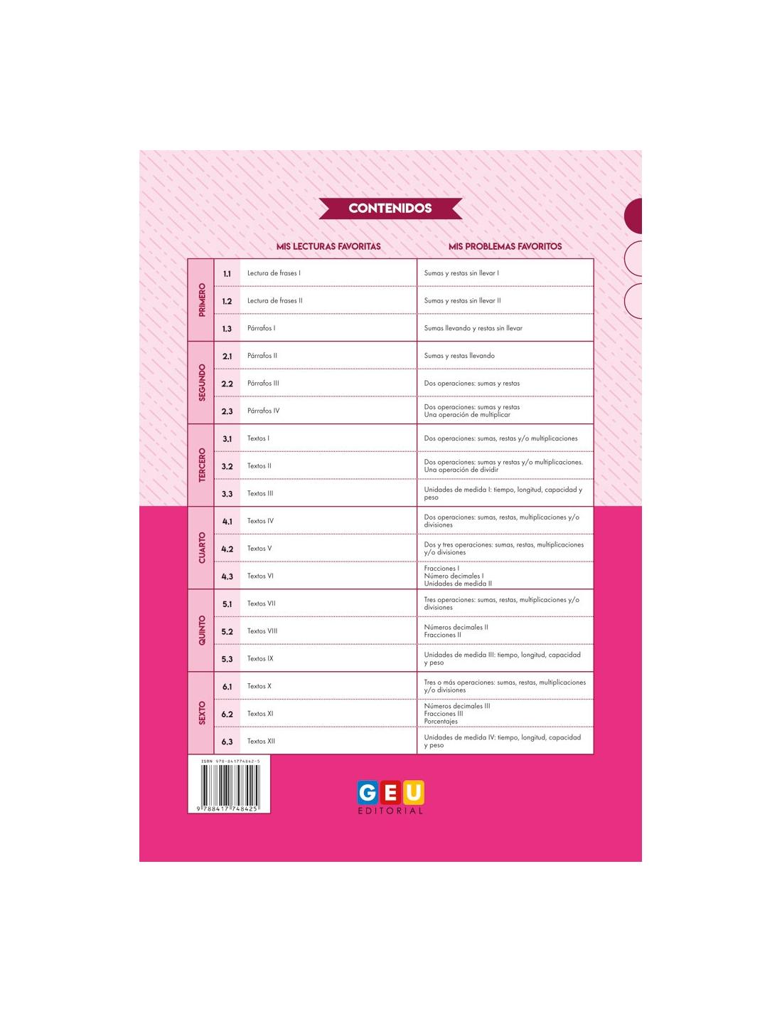 Este cuaderno de refuerzo de matemáticas, creado por Editorial GEU, forma parte de una colección de 18 títulos organizados de 1º a 6º de Primaria.