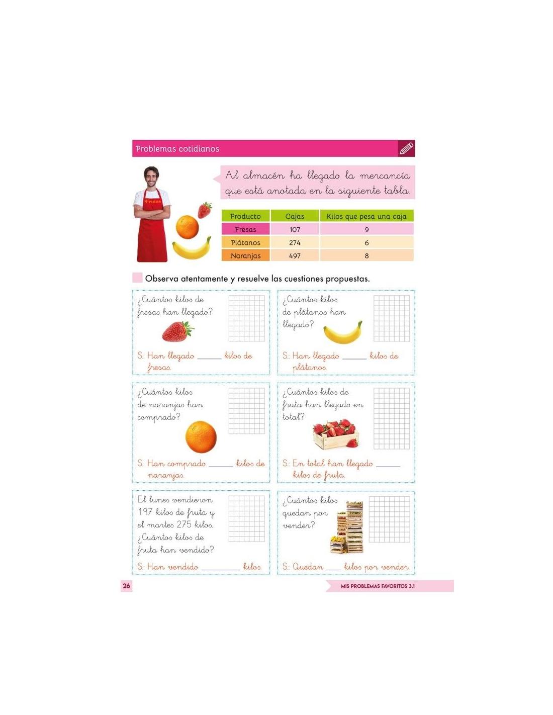 ¿A tu alumno/a le cuestan los problemas de matemáticas? ¿Tiene dificultades para entender qué hacer cuando tiene que sumar, restar o multiplicar en un enunciado? El cuaderno Mis problemas favoritos 3.1 está diseñado justo para eso: para ayudar a que tu hijo o alumno por fin entienda, siguiendo paso a paso, cómo resolver problemas de matemáticas de manera autónoma y sin agobios.
