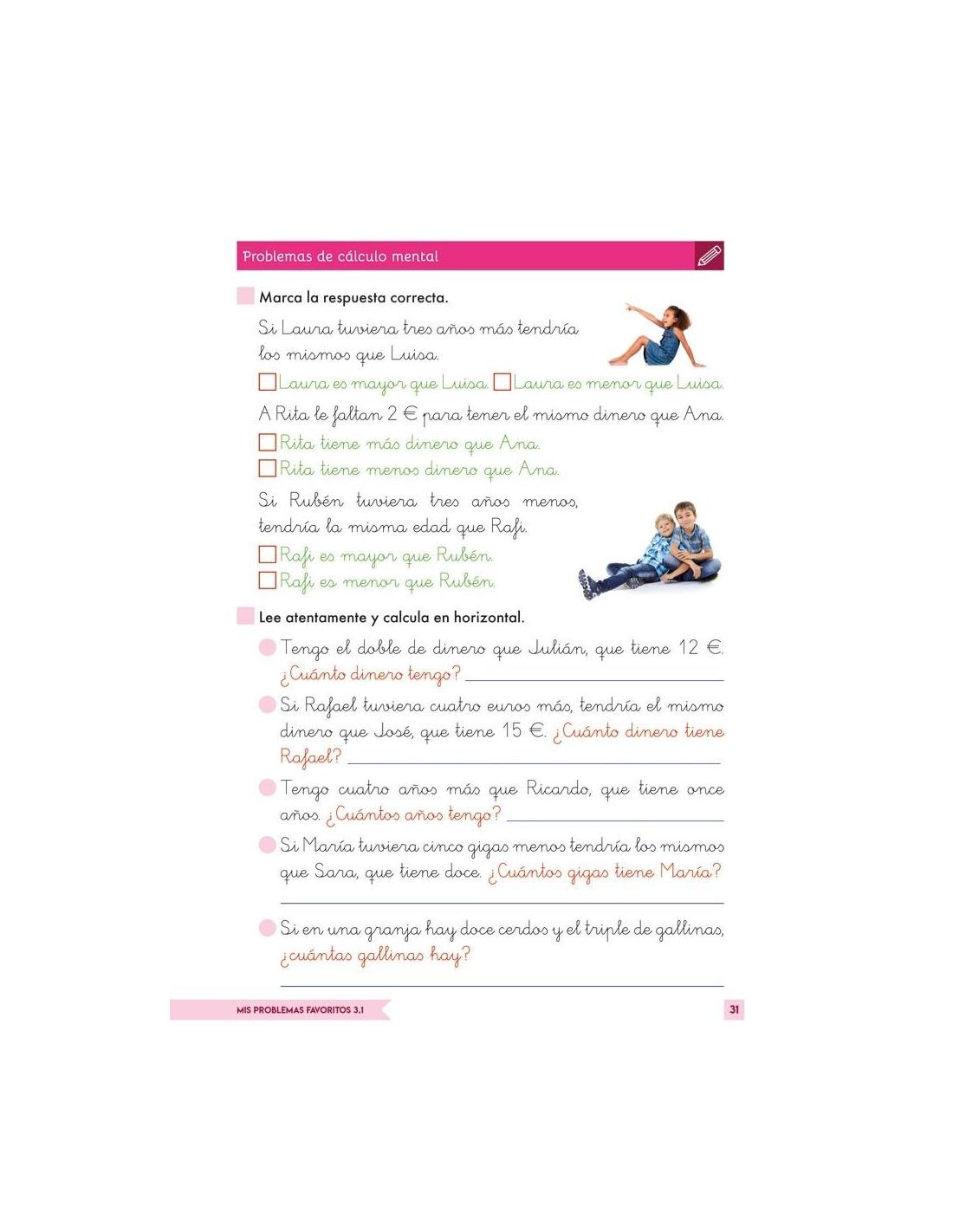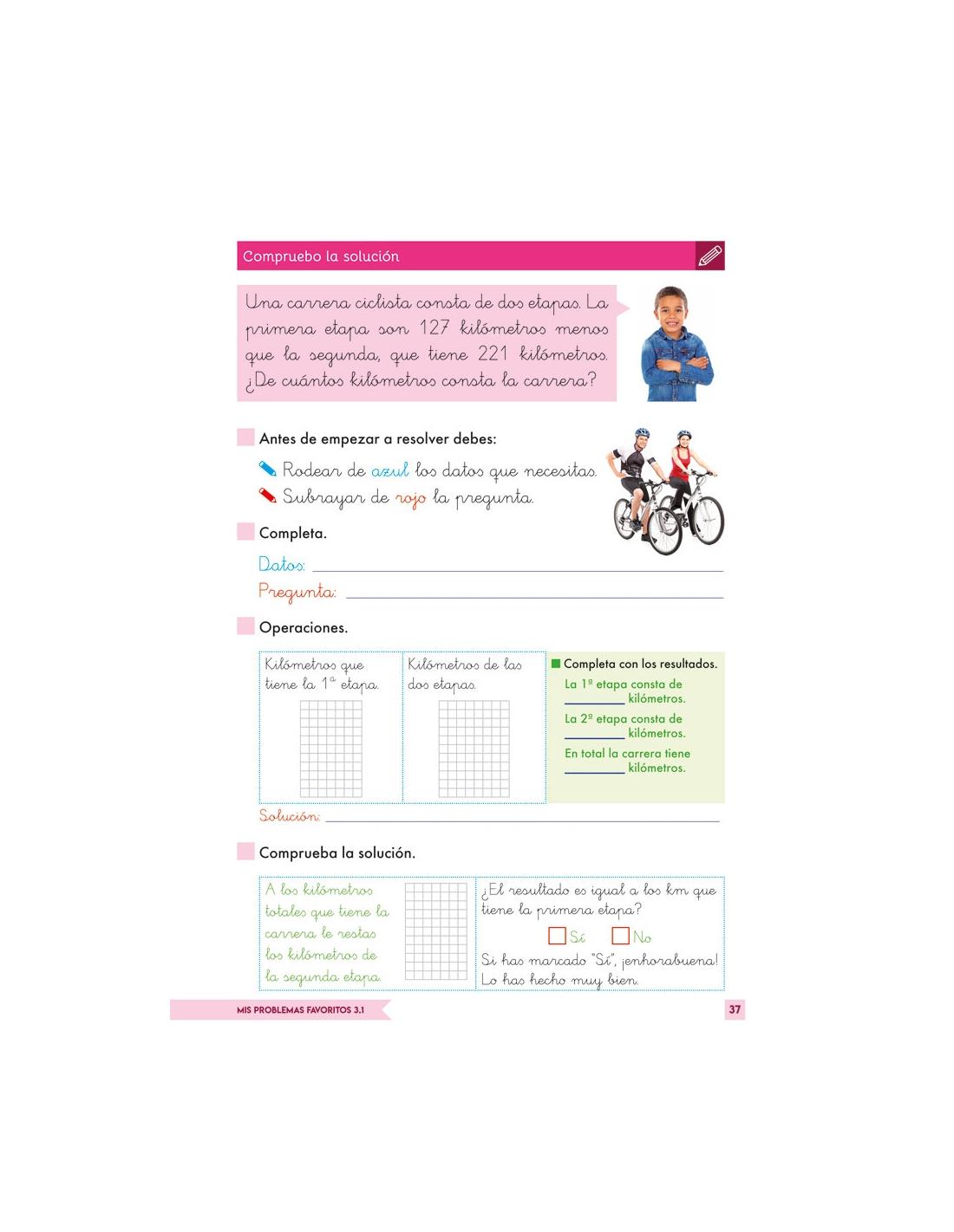 Cada ejercicio está planteado para desarrollar todas las fases del razonamiento matemático: entender el problema, pensar la mejor estrategia de resolución, realizar los cálculos oportunos y comprobar el resultado. Está elaborado con un diseño claro, contiene una cuadrícula de 4 mm para plantear las operaciones, y actividades de forma clara.