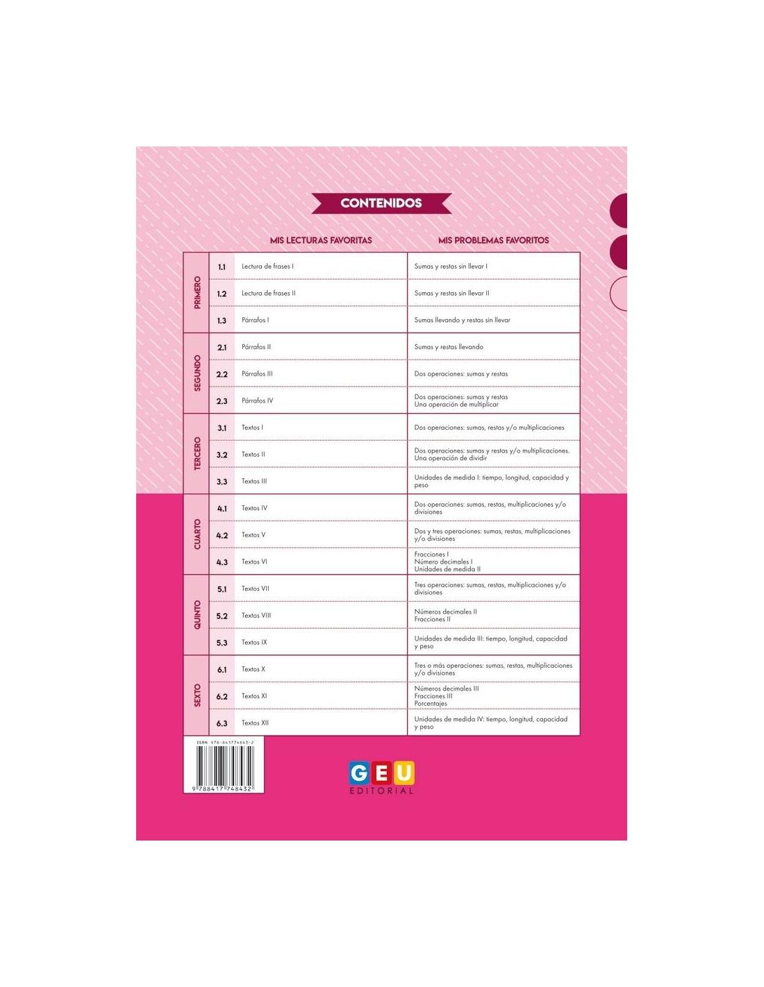 ¿Tu hijo o alumna sabe sumar, restar y multiplicar, pero se bloquea cuando tiene que aplicar esas operaciones a un problema real? ¿Empiezan a introducir la división y no sabes cómo ayudarle? El cuaderno Mis problemas favoritos 3.2, de Editorial GEU, es justo lo que necesitas para convertir esas dudas en confianza.