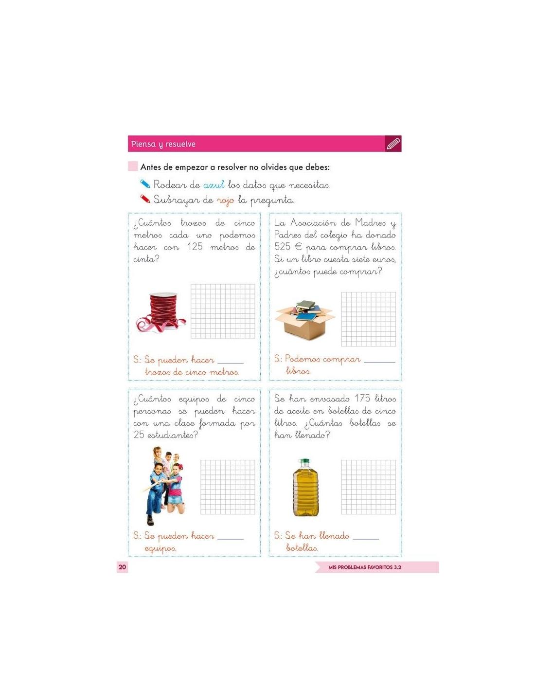¿Tu hijo o alumna sabe sumar, restar y multiplicar, pero se bloquea cuando tiene que aplicar esas operaciones a un problema real? ¿Empiezan a introducir la división y no sabes cómo ayudarle? El cuaderno Mis problemas favoritos 3.2, de Editorial GEU, es justo lo que necesitas para convertir esas dudas en confianza.