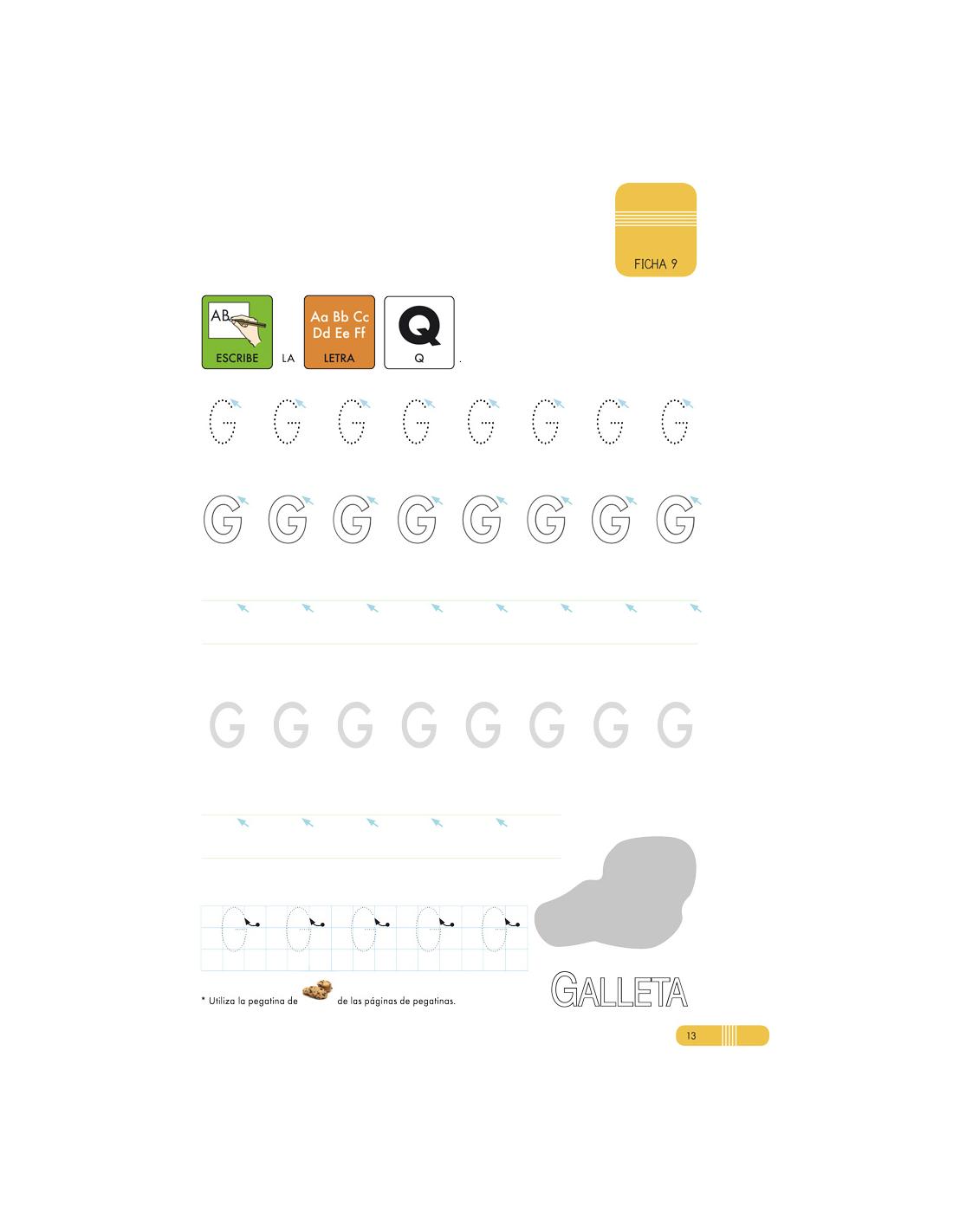 Este cuaderno en concreto, trabaja las consonantes en mayúscula: Q, S, G