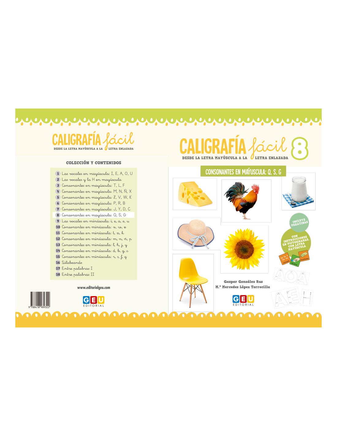 Descubre "Caligrafía fácil 8", un cuaderno que forma parte de una colección elaborada siguiendo los criterios de madurez grafomotora en el movimiento de la muñeca.