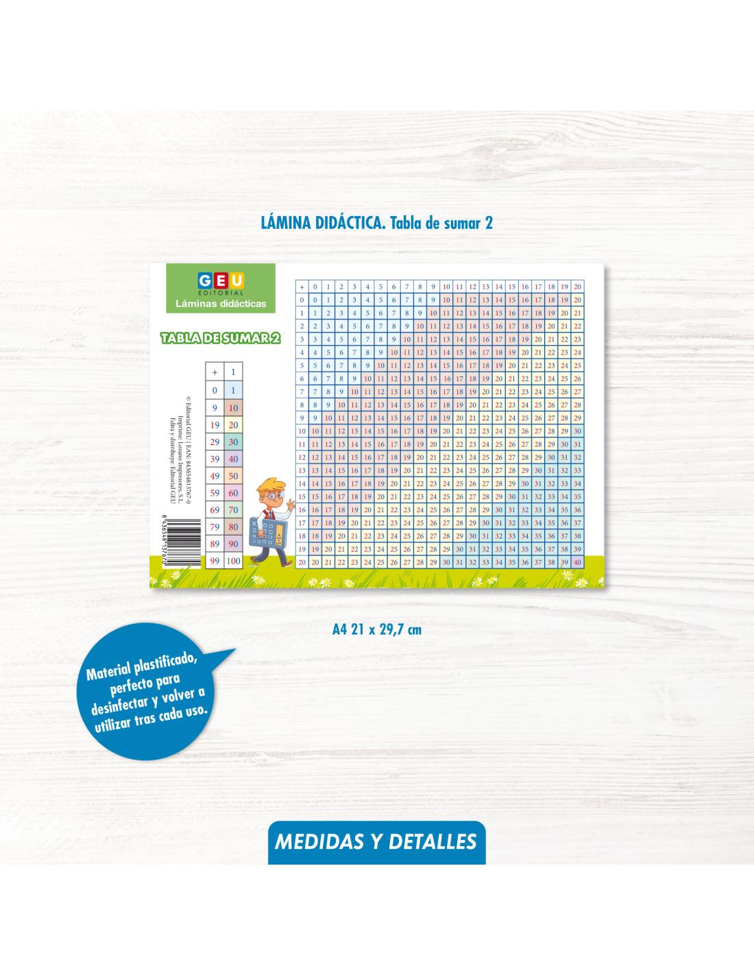 - Lámina didáctica. Tabla de sumar.