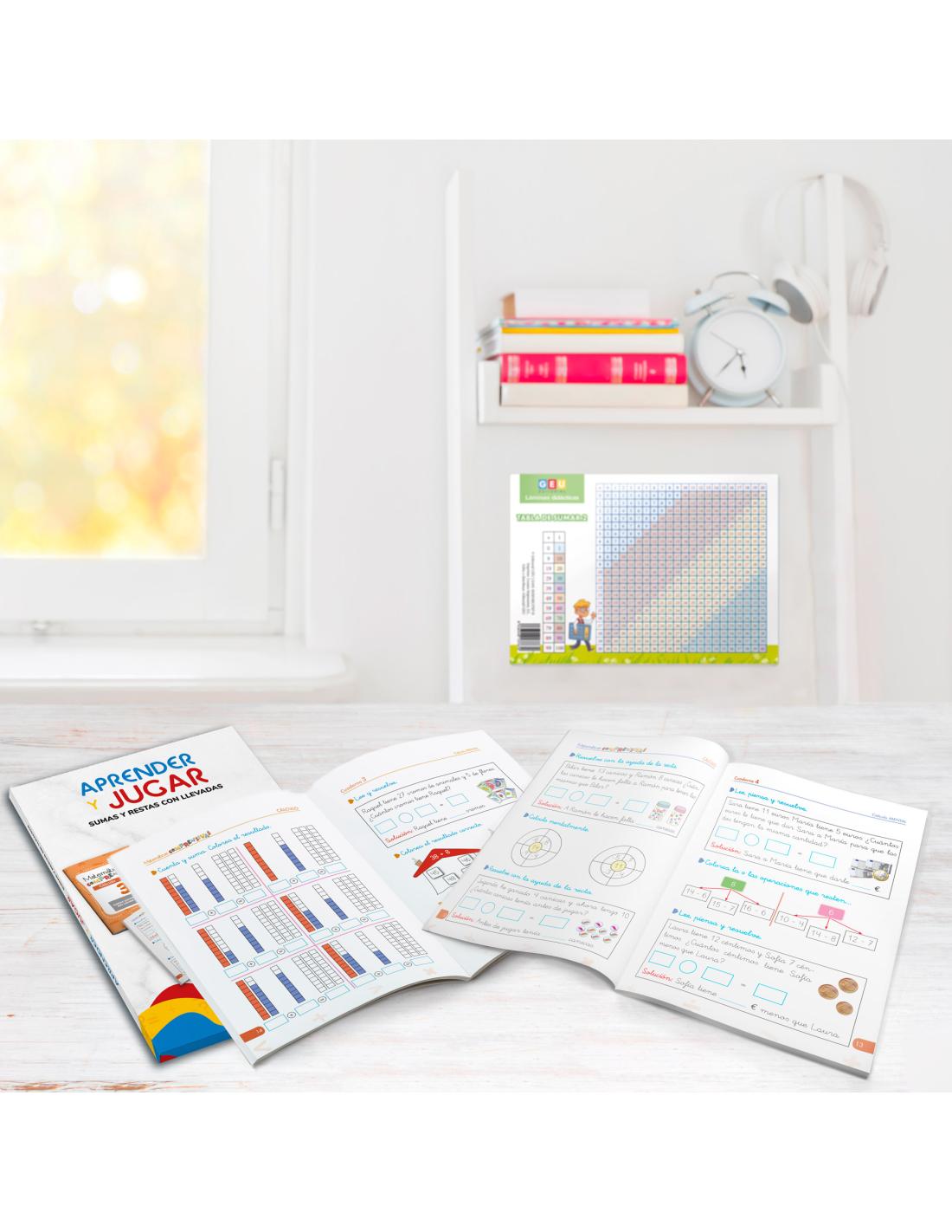 Cuaderno ideal para dominar las sumas con llevadas y las restas con llevadas en los primeros cursos de primaria. Incluye ejercicios progresivos y visuales para que los niños entiendan paso a paso cómo realizar cada operación con claridad y confianza.