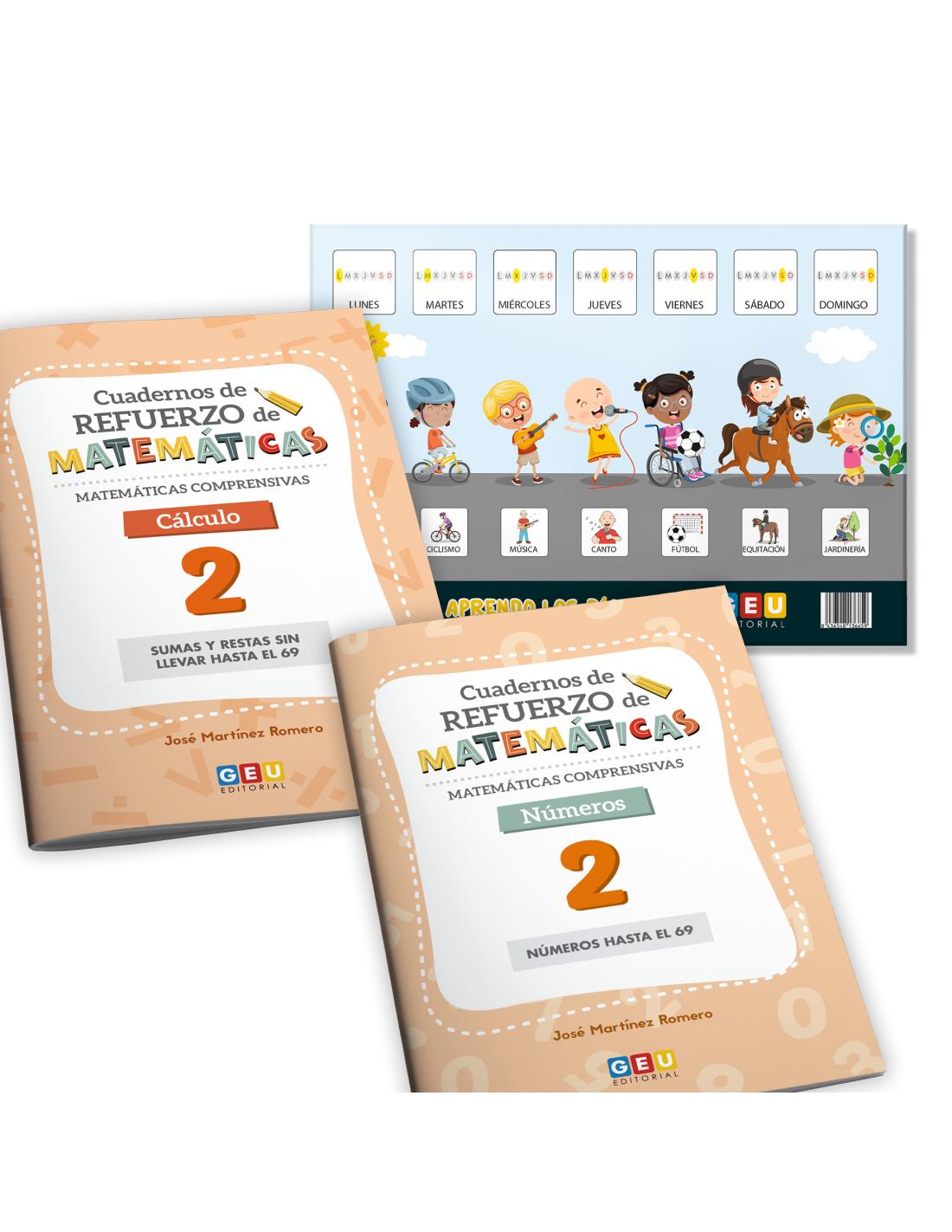 🌟¡Descubre el Pack 1.2. de Cuadernos de Refuerzo de Matemáticas Comprensivas GEU. Cálculo 2 + Números 2 de Editorial GEU 1 Primaria para aprender a sumar y restar y trabajar los números hasta el 69 de manera divertida!🌟