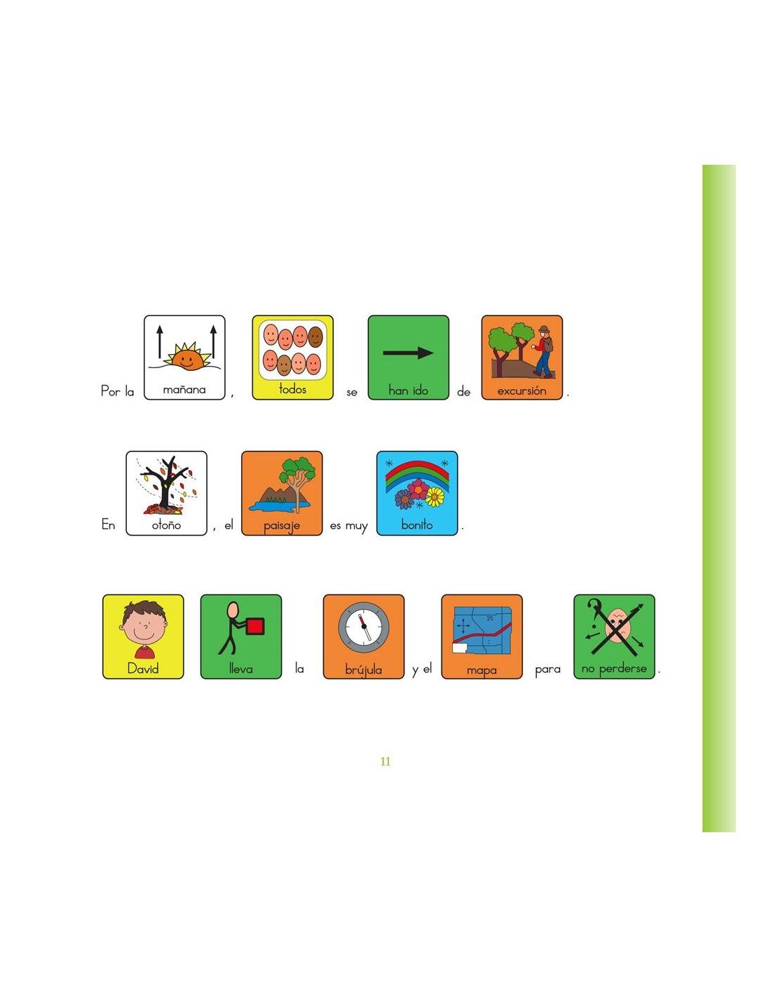 Contiene textos adaptados en pictogramas, tarjetas con pictogramas y tarjetas ilustradas en alta calidad que facilitan la comprensión de la historia y les permite componer las frases de forma autónoma.