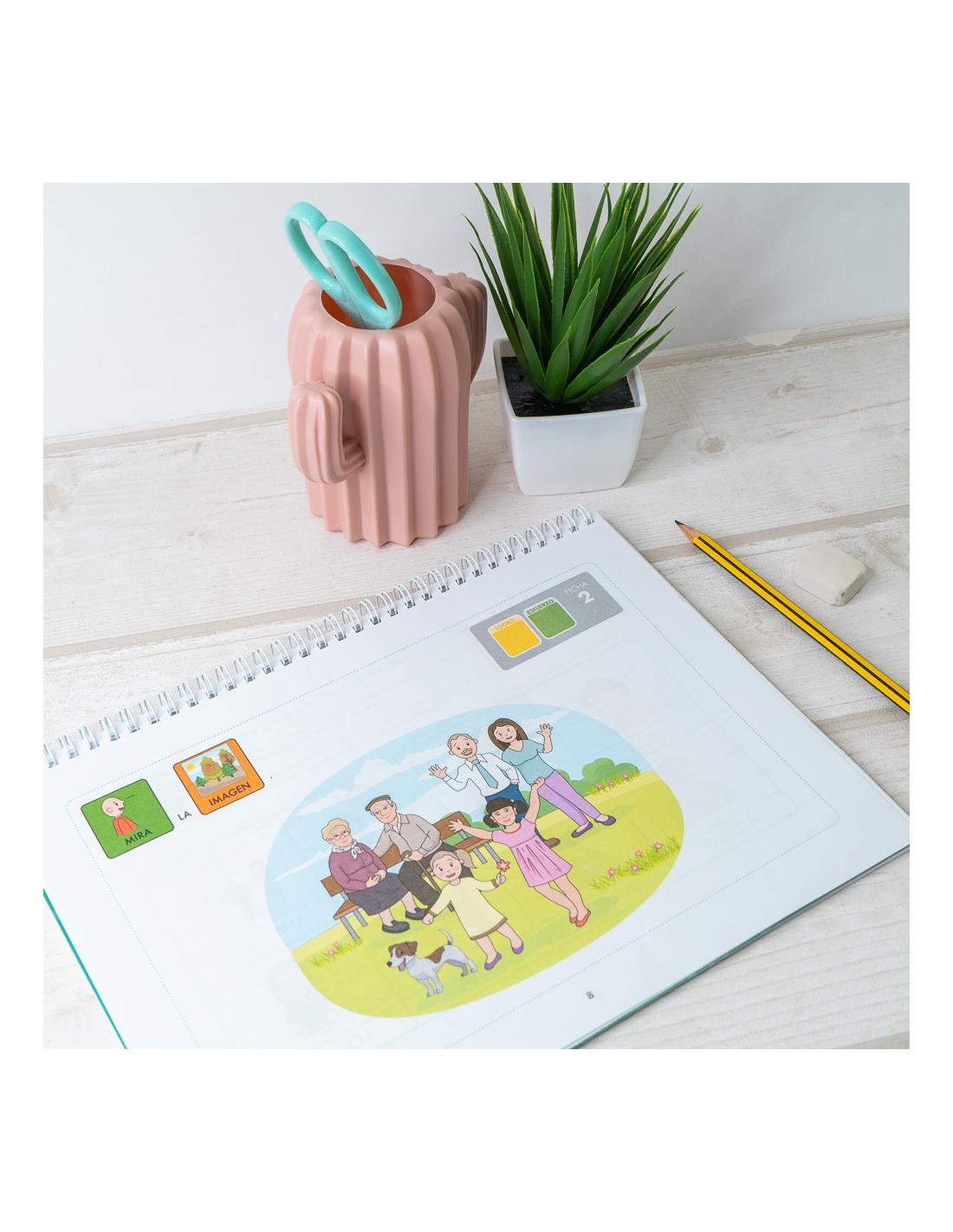 “Método de Lectoescritura Visual 1: Mi familia” es un cuaderno didáctico de Editorial GEU diseñado para facilitar el acceso a la lectoescritura a través de la ruta visual. Este material está especialmente indicado para niños y niñas con necesidades educativas especiales, como aquellos con Trastorno del Espectro Autista (TEA) o déficit cognitivo.