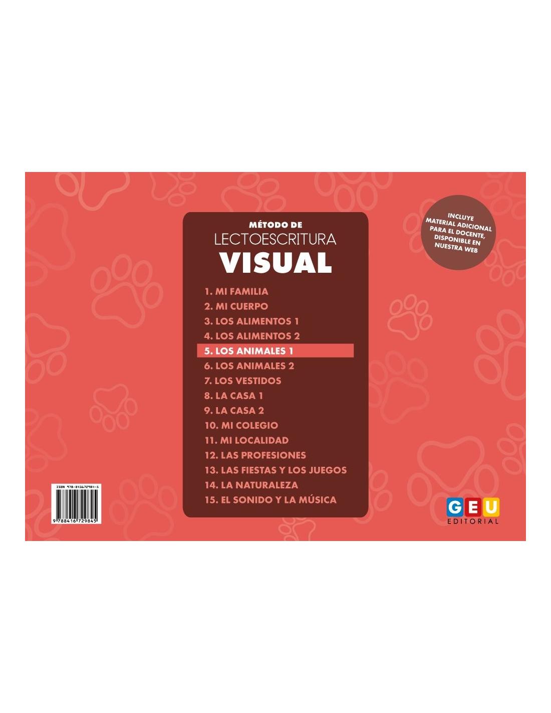 “Método de Lectoescritura Visual 5: Los animales 1” es un cuaderno didáctico de Editorial GEU diseñado para facilitar el acceso a la lectoescritura a través de la ruta visual. Este material está especialmente indicado para niños y niñas con necesidades educativas especiales, como aquellos con Trastorno del Espectro Autista (TEA) o déficit cognitivo.