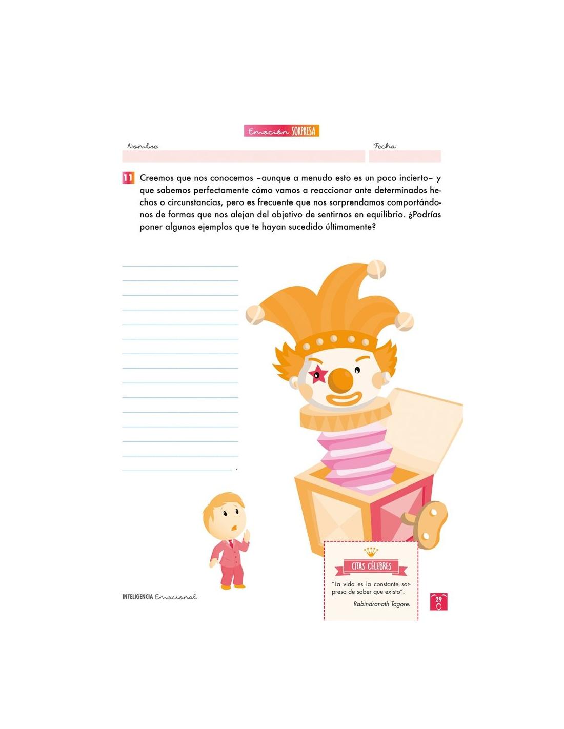 El cuaderno Sorpresa es el sexto de la colección Inteligencia Emocional, formada por un total de 8 títulos. Se trata de un cuaderno donde el alumnado podrá conocerse a sí mismo y aprender de sus emociones para gestionarlas de forma adecuada.