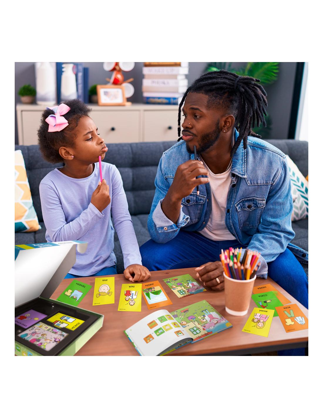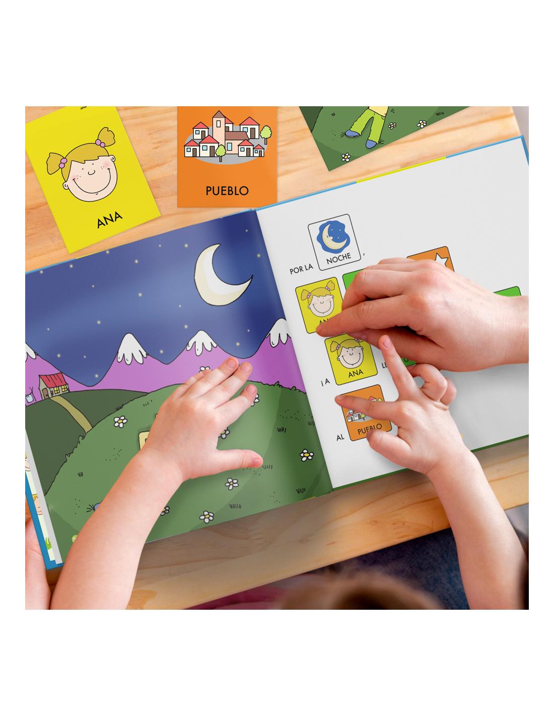 Contiene textos especialmente adaptados con pictogramas, tarjetas con pictogramas y tarjetas ilustradas en alta calidad para facilitar la comprensión de la historia y permitir al niño/a construir las frases de forma autónoma.