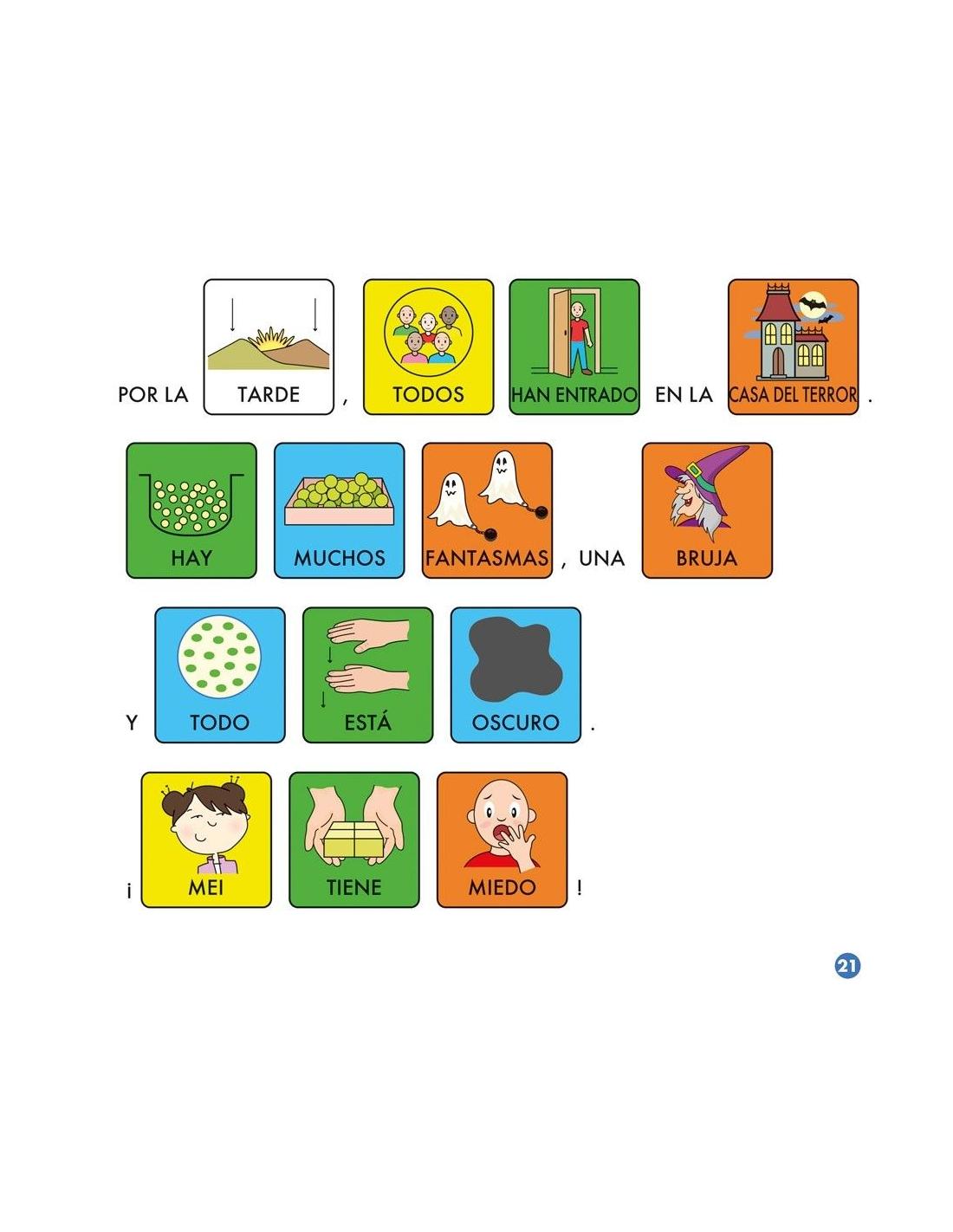 Contiene textos adaptados en pictogramas, tarjetas con pictogramas y tarjetas ilustradas en alta calidad que facilitan la comprensión de la historia y les permite componer las frases de forma autónoma.