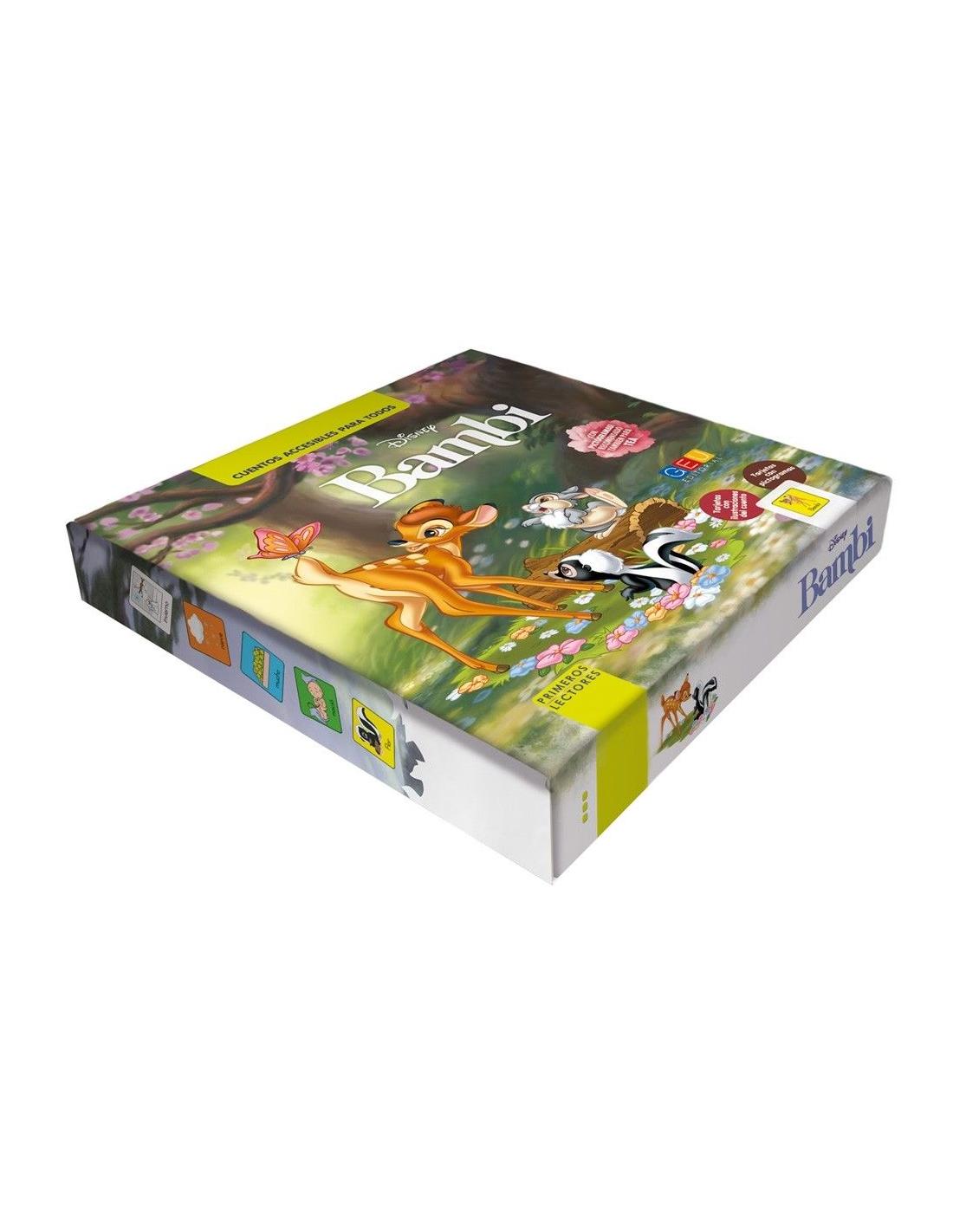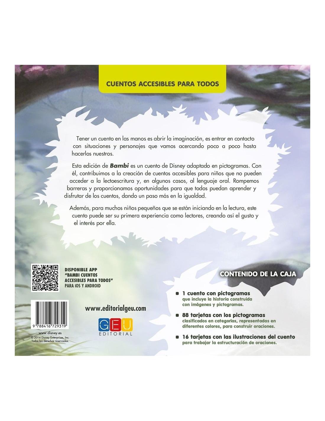 Cada caja contiene un cuento con pictogramas del clásico cuento de Bambi, tarjetas ilustradas acerca del cuento y tarjetas con pictogramas en alta calidad para realizar las actividades de forma sencilla.