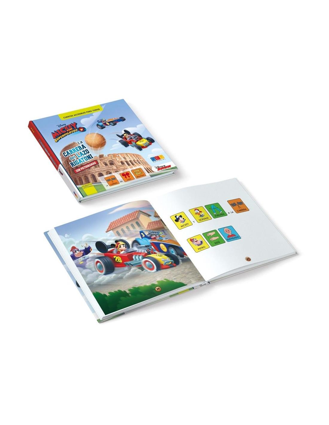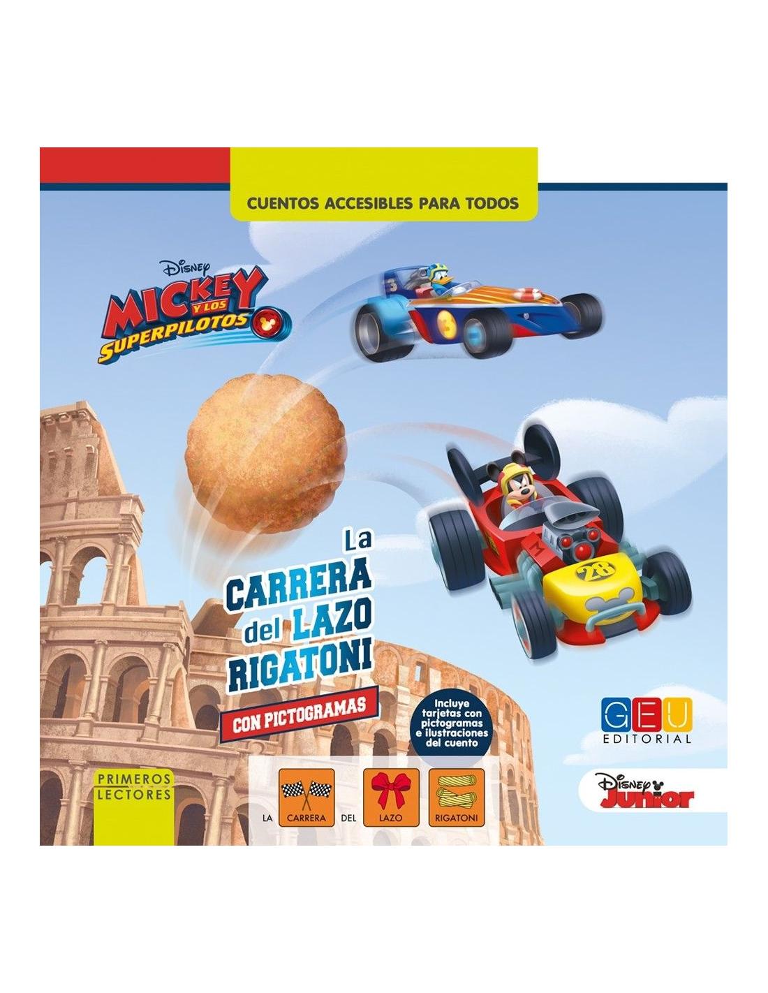La carrera del lazo Rigatoni es una historia de la popular serie de Disney Channel Mickey y los Superpilotos. Una intrépida aventura adaptada ahora en este cuento con pictogramas en letra mayúscula.