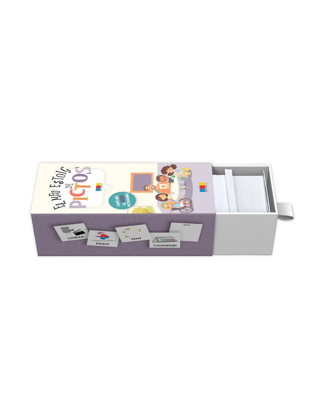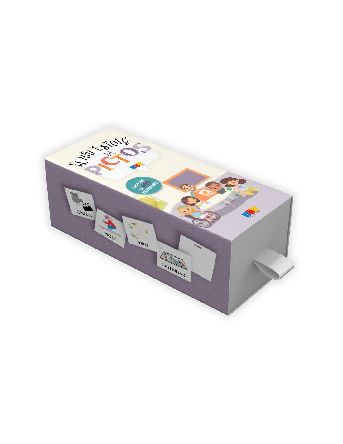 El meu estoig de pictos és una eina pràctica per a desenvolupar i facilitar la comunicació. Una recopilació de pictogrames en format targeta (7 x 7 cm) i en lletra majúscula: de fàcil maneig i amb multitud d'aplicacions tant a l'aula com a casa.