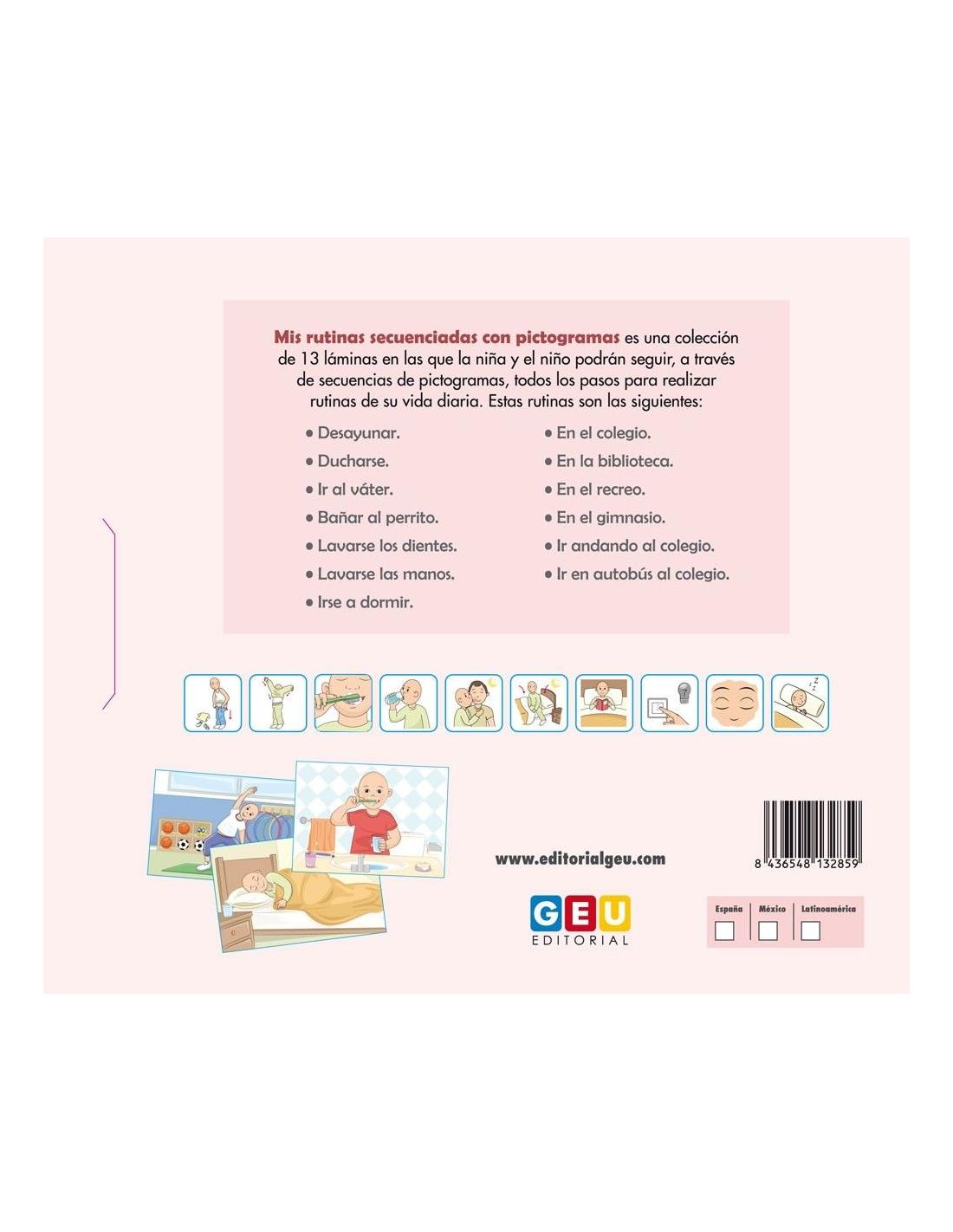 Mis rutinas secuenciadas es una colección de 13 láminas donde el niño y la niña podrán seguir a través de secuencias de pictogramas, todos los pasos para realizar las rutinas de su vida diaria, facilitando su aprendizaje y desarrollo en el día a día.