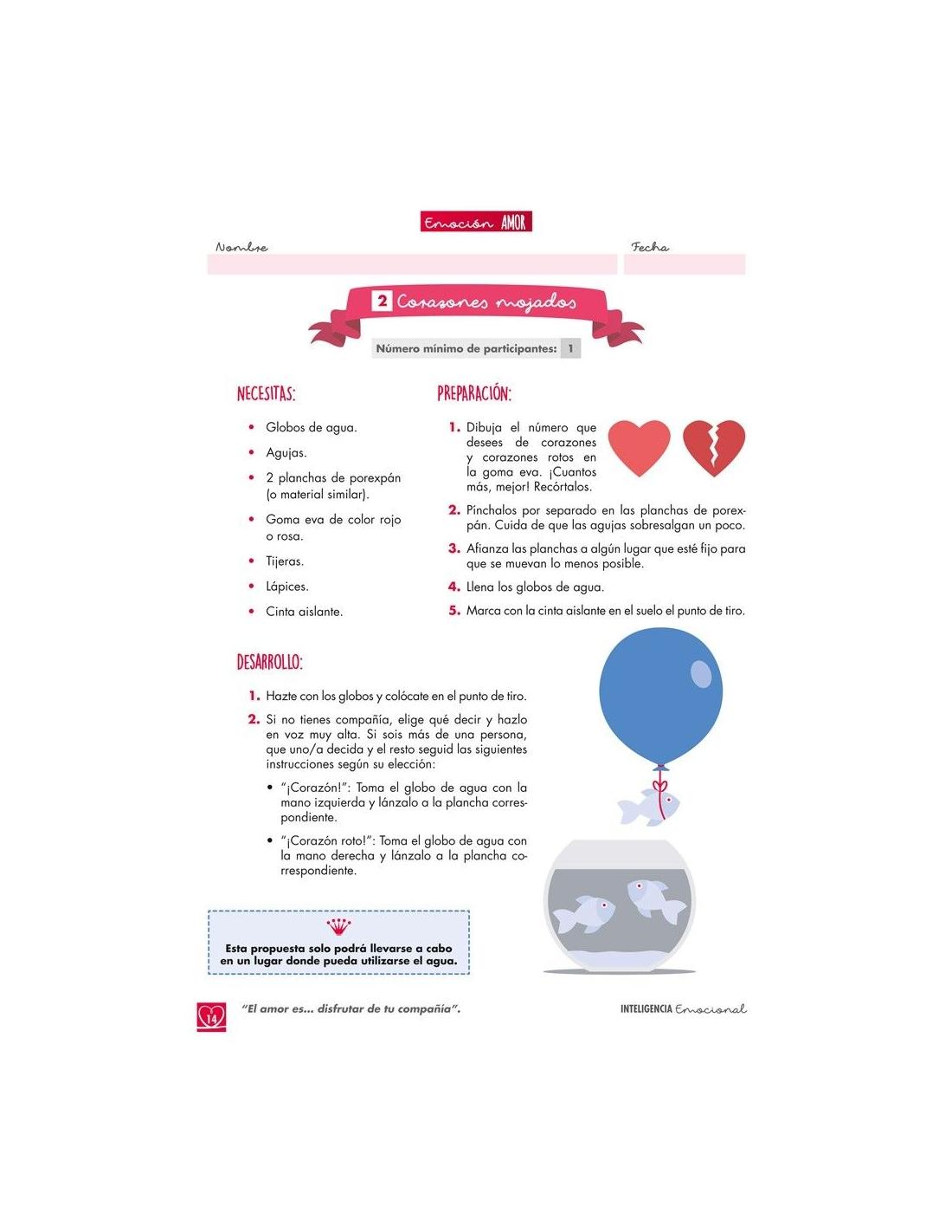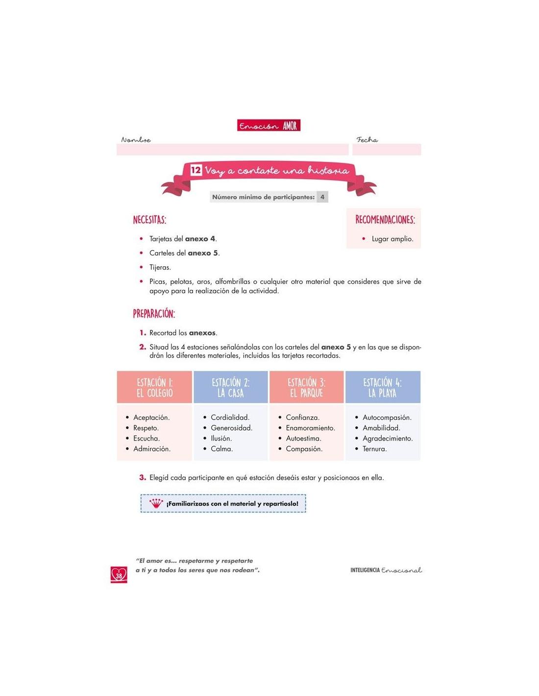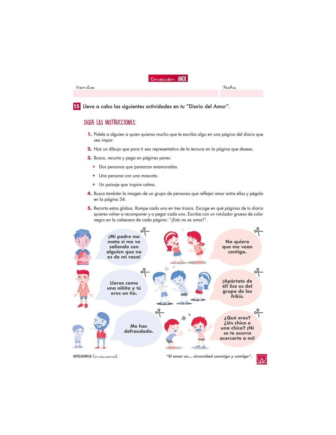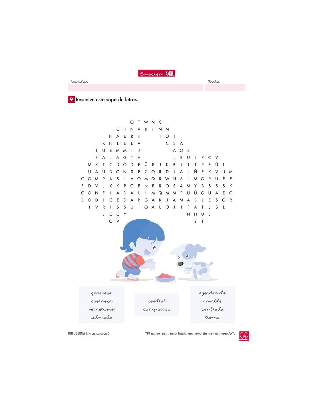 - 1 cuaderno con fichas de trabajo sobre el amor y otras emociones pertenecientes a su familia.