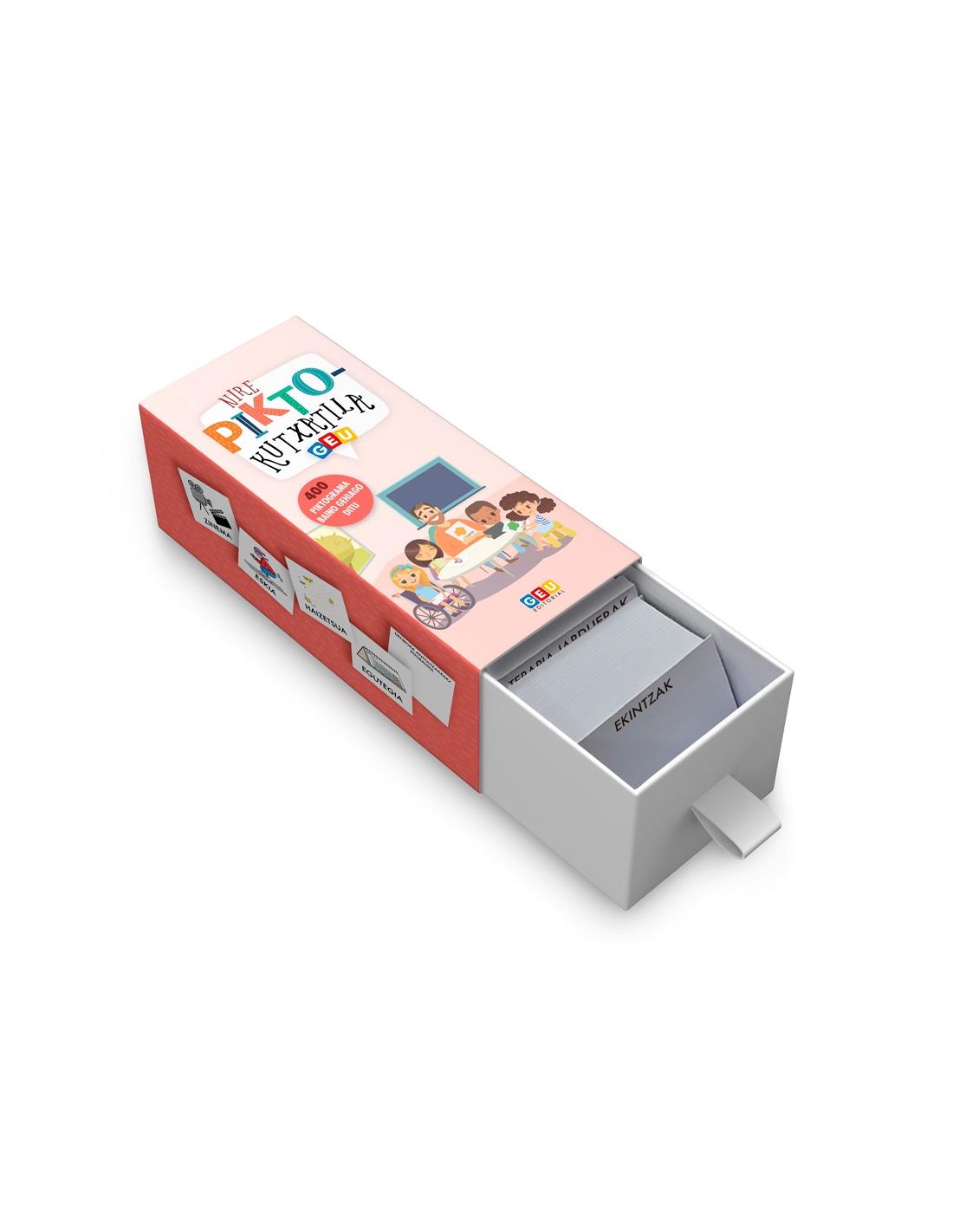 Gure Piktorama Kit-a komunikazio alternatiboa hobetzeko soluzio osatua da. 16 kategoriatan sailkatu eta hautatu diren 400+ piktorama baino gehiago hartzen ditu, elikadura eta animaliak, irudiak eta koloreak barne. Txartel bakoitza plastifikatua dago eta letra larriz idatzita dago irabazi-garrikeria eta eguneroko erabilera errazteko.
