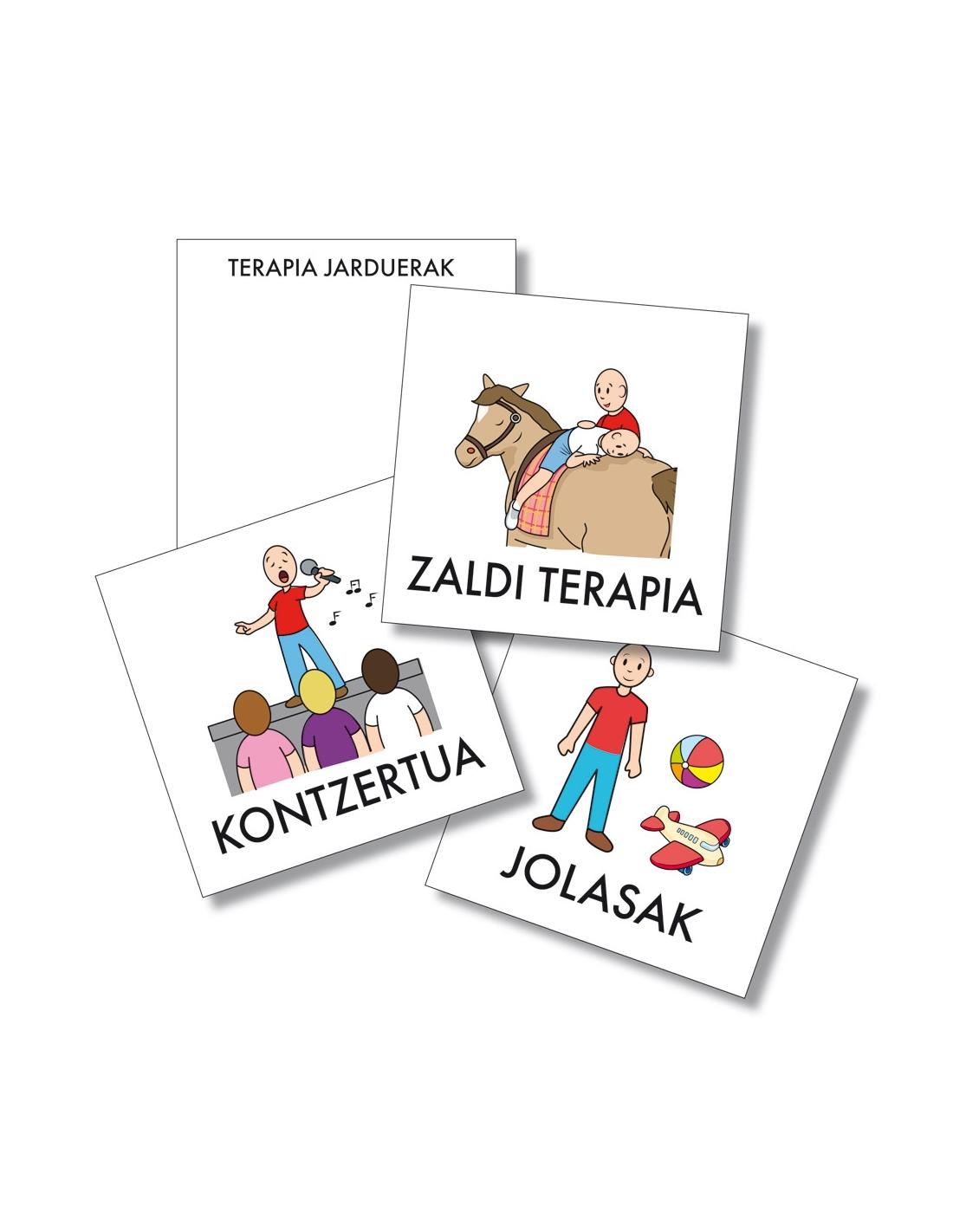 Txartel formatuko piktoen bilduma da, 7 x 7 zmtako (oiho tamaina) letra larriz, erabilera erraza eta anitzekoak eta bai banaka zein taldeka erabiltzeko.