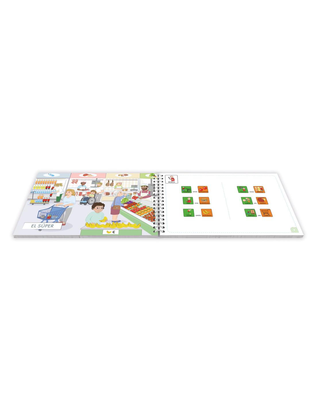 Comprensión con pictogramas El centro comercial, forma parte de la colección "Comprensión con pictogramas", organizada por centros de interés (casa, colegio, centro comercial, alimentos, animales...).