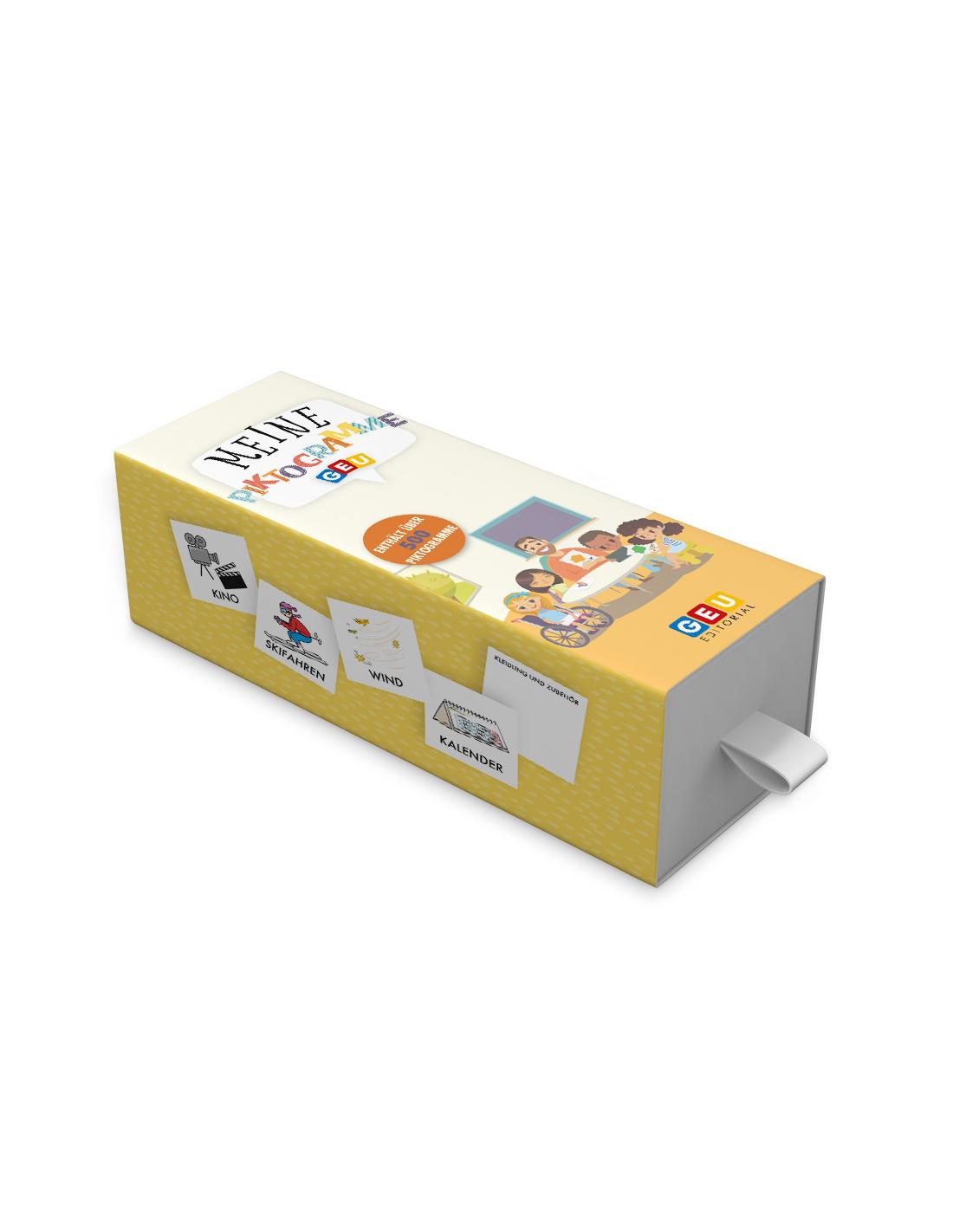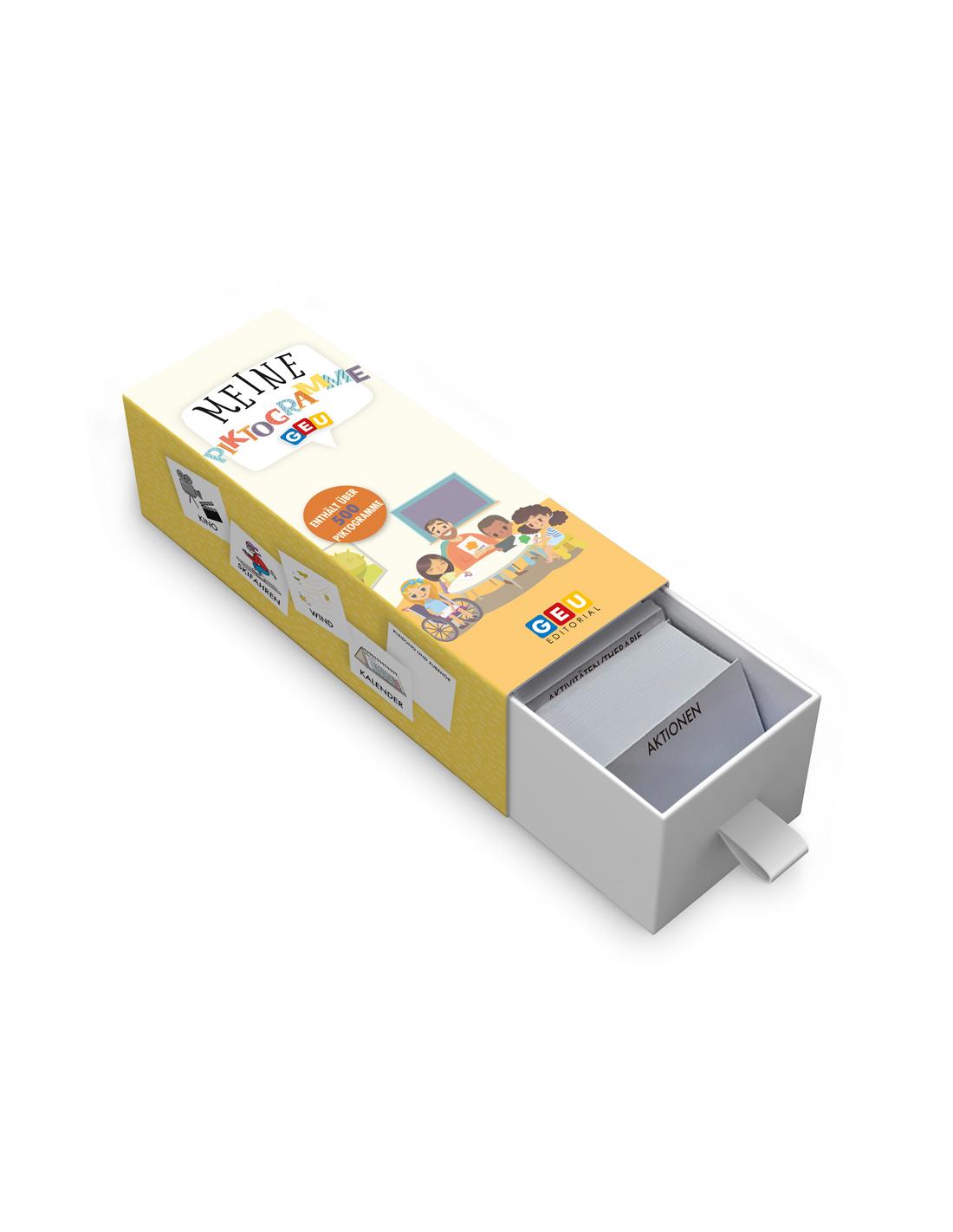 Formato: Caja de 19 x 8 x 9 cm con pictogramas de 7 x 7 cm (tamaño estándar) y 17 separadores de las diferentes categorías.